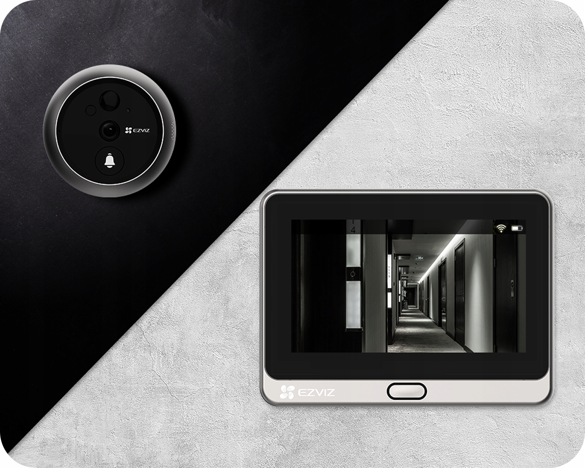 За допомогою видошукача EZVIZ DP2 ви можете бачити, хто чекає біля дверей за допомогою внутрішнього сенсорного монітора або програми EZVIZ. Лише кількома дотиками на маленькому або великому екрані ви можете переглядати детальні високоякісні зображення. Ви також можете вибрати звук гонг і поговорити з людьми, які стоять перед дверима. Захист стає легшим завдяки сповіщенням, що викликаються подіями, інформуючи вас про всі важливі події.