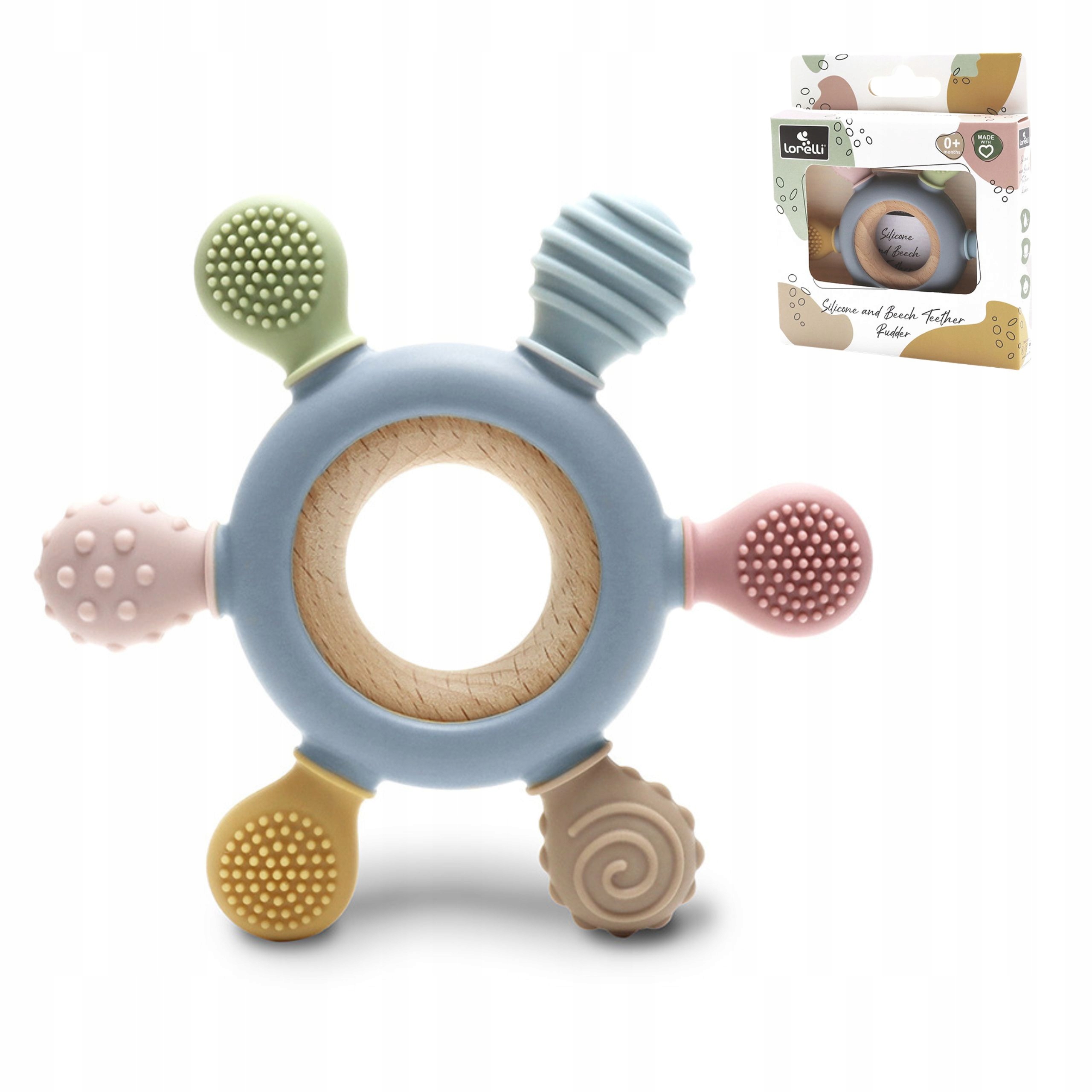 Цей цікавий Teether не тільки заспокоює недуги, пов'язані з прорізуванням зубів , але й надає дитині різні сенсорні подразники . Підключення безпечного силікону та букового дерева забезпечує цікаву текстуру, що підтримує розвиток невеликих рухових навичок. Завдяки різним поверхням та спеціальними вкладками , TEETHER не тільки сприяє захопленню, але й обережно масажує ясна . Він також може бути використаний для нанесення та розкидання гель -заспокійливого гелю, приносячи додаткове полегшення малюкові.