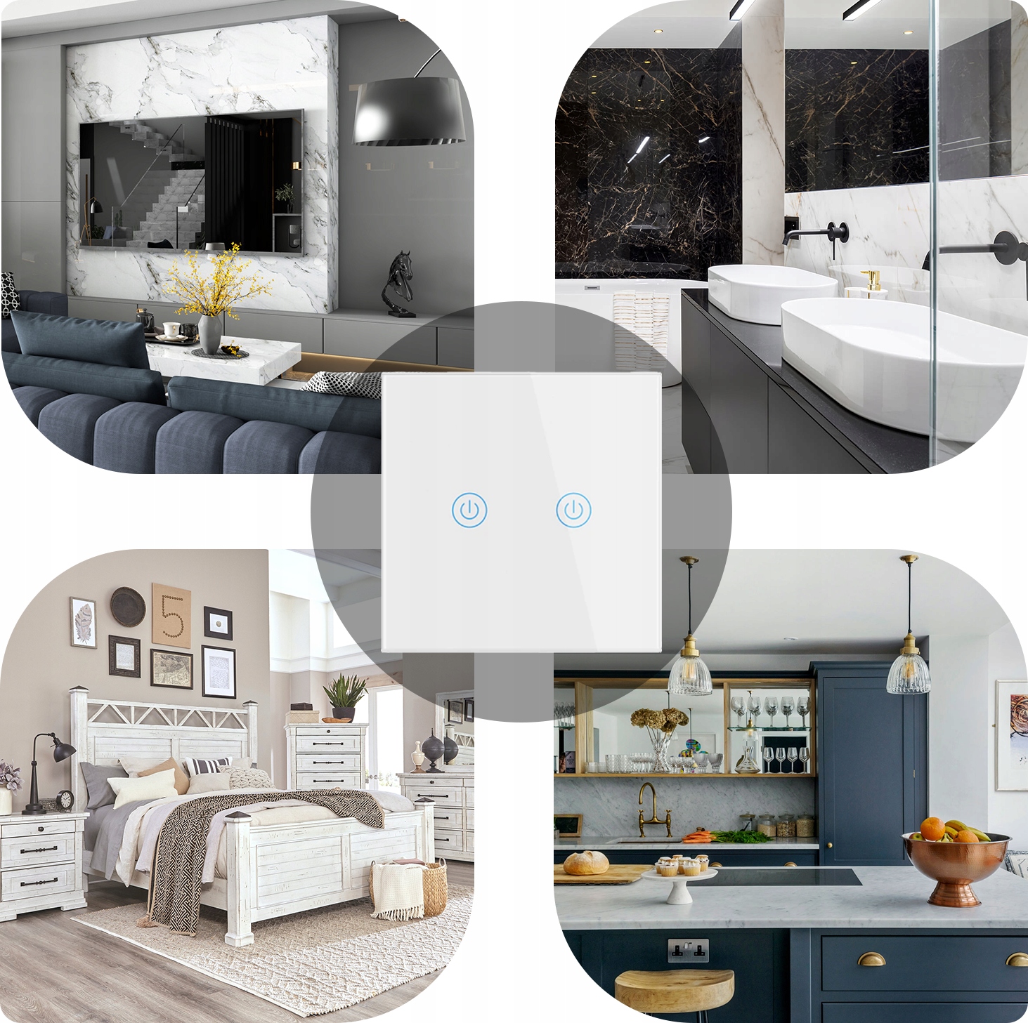 Скляна панель має кольорове підсвічування сенсорної кнопки - Після увімкнення підсвічування кнопка світиться ніжно-блакитним кольором, що значно полегшить пошук вимикача в темряві , коли вимкнено, він світиться червоним.