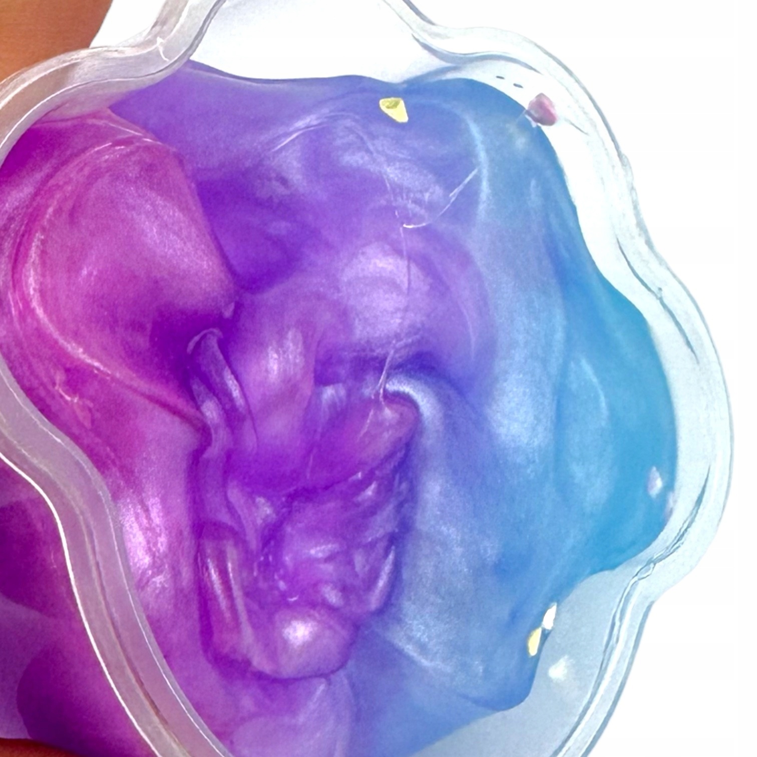 Слайм надзвичайно еластичної консистенції. У масу додані блискітки, що робить її ще більш привабливою. На дотик нагадує пудинг. Все закрито в цікаву коробку.