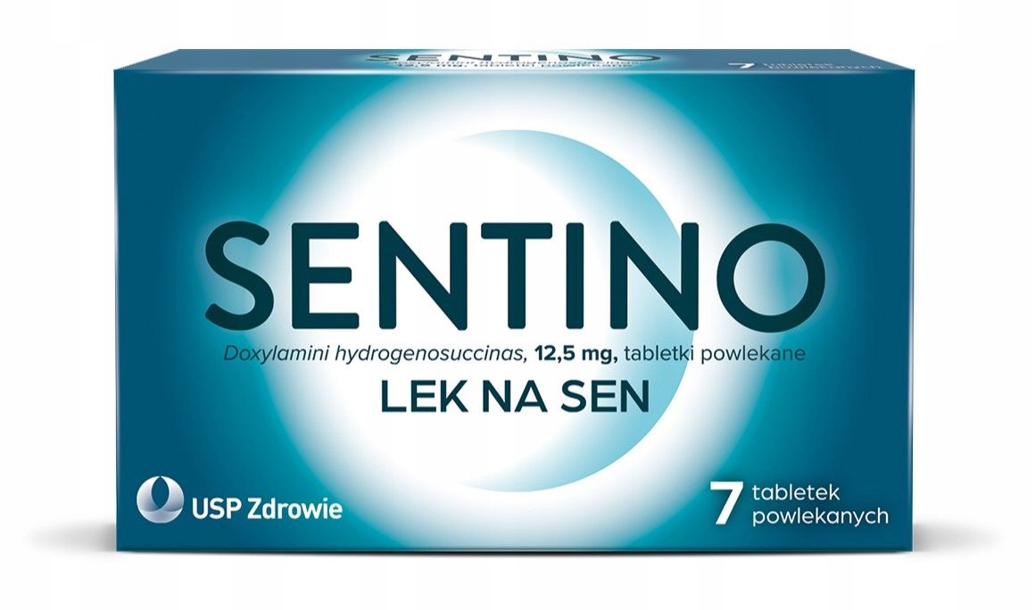 Сентино – лікарський засіб, що містить діючу речовину доксиламіну гідрогенсукцинат. Доксиламін належить до групи препаратів із снодійною та седативною дією. Лікарський засіб призначений для дорослих.