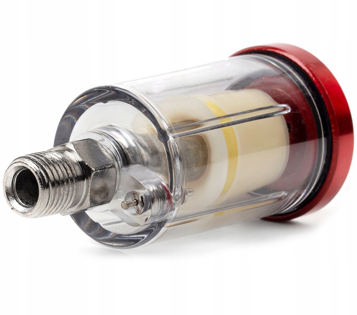 - Відокремлювач стисненого повітря вловлює частинки води та масла, які конденсуються в пневматичному шлангу, призначений для використання з фарбувальними пістолетами, гайковими ключами та іншими пневматичними пристроями.