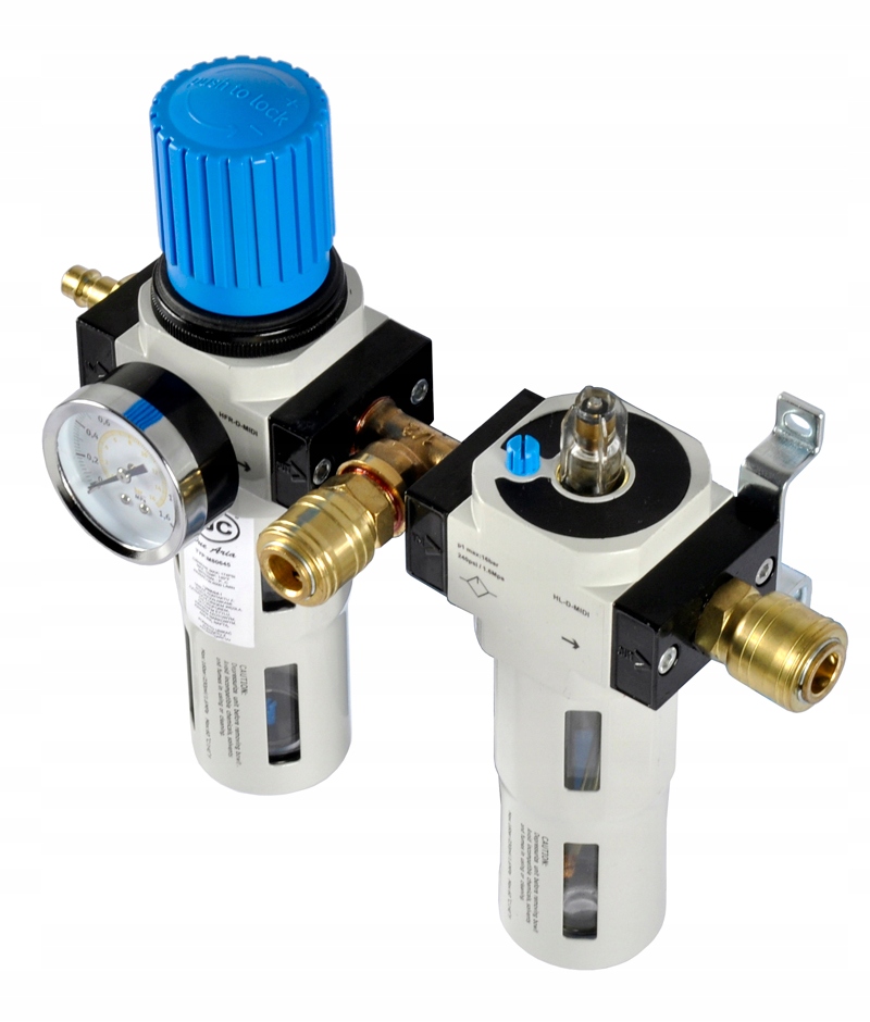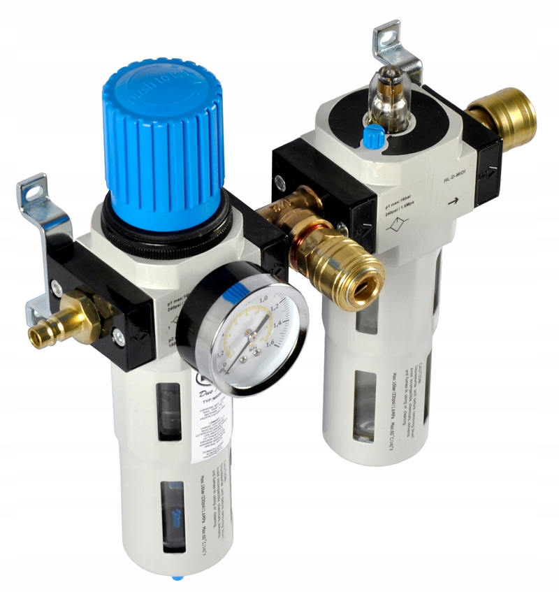 Вони використовуються в пневматичних системах для отримання необхідної чистоти повітря та встановлення належного вихідного тиску та введення мастила. масла в установку. у формі масляного туману.