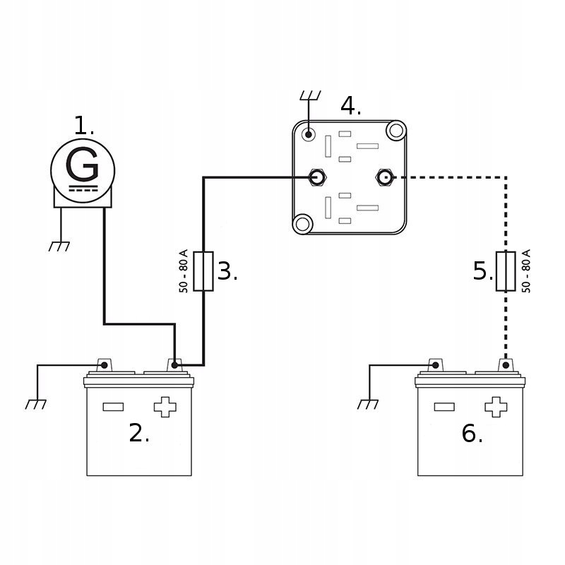 ізолятор акумулятора заряджає додатковий акумулятор під час операції двигуна транспортного засобу і не дозволяє основній батареї під час зупинки. Пристрій керує напругою основного акумулятора - якщо він виявляє його ріст понад 13,3 В, зовнішні реле контактів, що спричиняють потоку струму до другого акумулятора (світлодіодне світло буде світлом). Після вимкнення запалювання (нижче 12,8 В) реле розряджається, щоб не скинути основний акумулятор.
