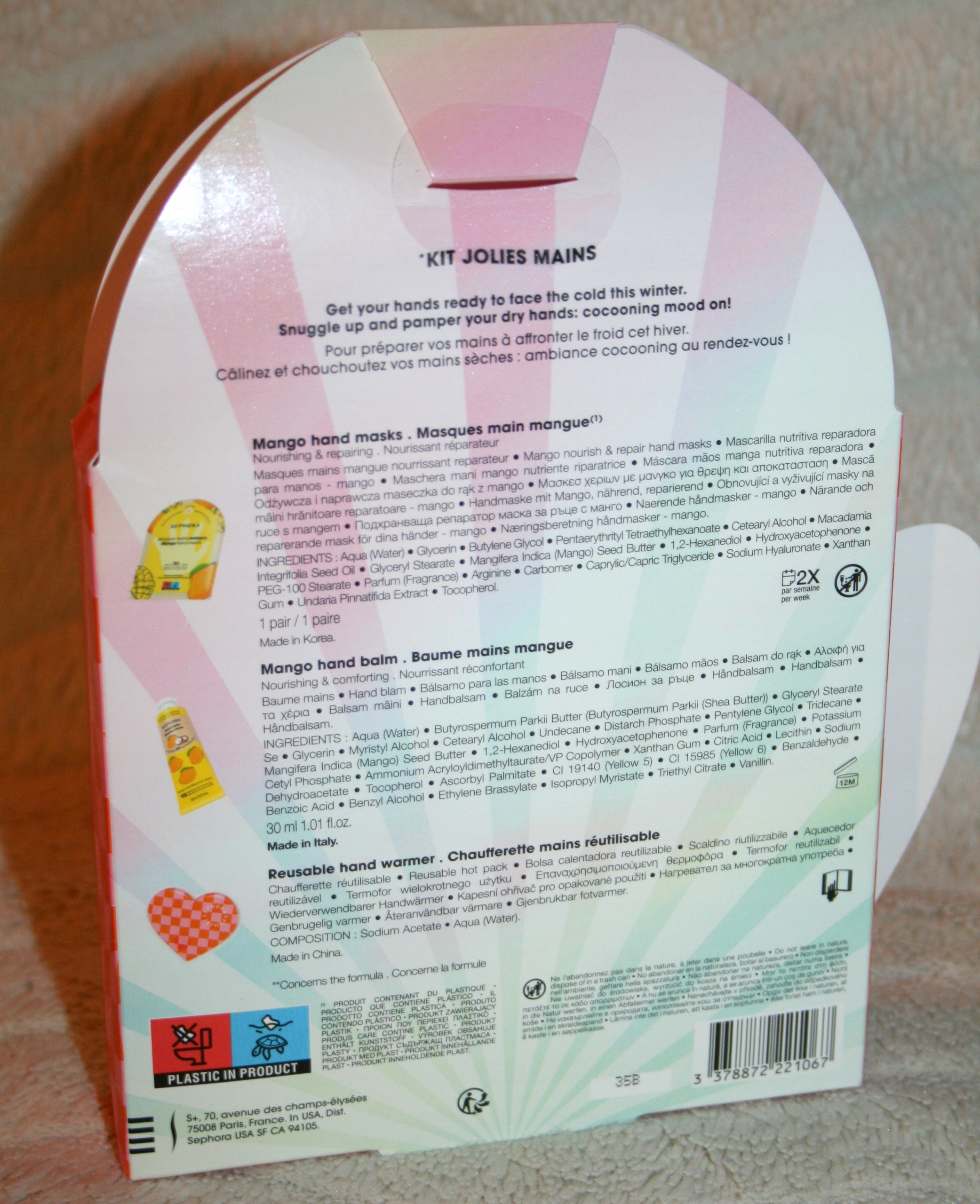 цієї зими. Ставка на добре загрожує руки завдяки набору догляду за колекціями Sephora. Красиві набори рук складаються з 3 продуктів, включаючи два поживні речовини з привабливістю манго. Всередині ви знайдете лосьйон для рук, маску для рук манго та чудовий нагрівач для багаторазового використання. Відчуйте комфорт і розслаблення.