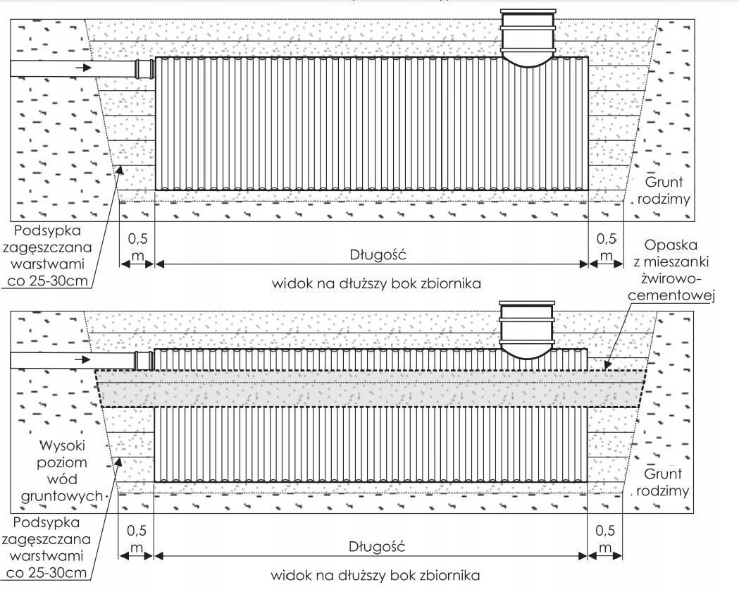 Септик об'ємом 5000 літрів (герметичний септик) з поліетилену високої щільності (HDPE)використовується для збору стічних та дощових вод та ін. домішки. Корпус резервуара виготовлено з міцного HDPE і має конструкцію з подвійною оболонкою, що дозволяє встановлювати його навіть у складних грунтових і водних умовах. Це рішення також працює в ситуаціях, коли велика глибина каналізаційної стінки унеможливлює використання стандартних одностінних резервуарів.