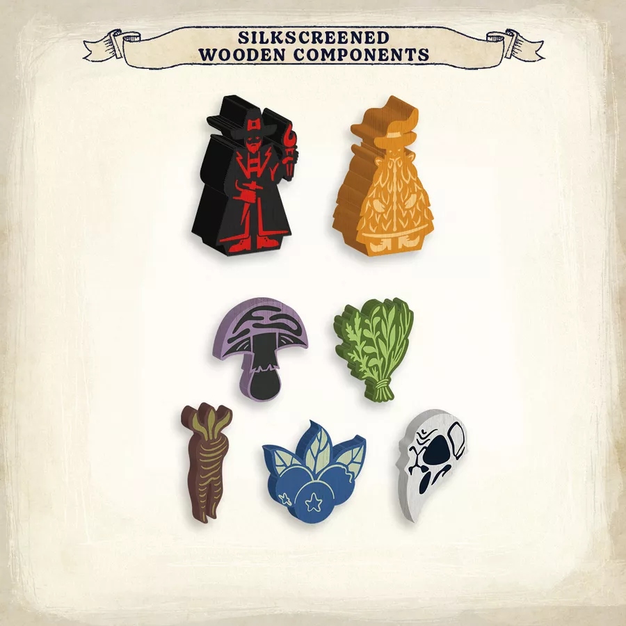 4 Якщо вони є ворожими свідками заяв, засуджена відьма звільняється і приєднується до Ковена, який врятував їх. Ви почнете з невеликого віку, але таким чином ви можете розширити свій клан до чотирьох відьом, кожен з яких має свою особистість та особливі навички, щоб допомогти вашій справі. Абсолютні відьми, спіймані мисливцями на відьом, також судять, тому з достатньою підтримкою городян навіть відьом від інших, менш обережних колод гравців можуть опинитися у вашому.Доступні, інтуїтивно зрозумілі та відомі: Септима -це поки що найдоступніша назва від Mindclash Games з прекрасним ручним мистецьким стилем від Villő Farkas та мистецтвом Барбари Бернат, дерев'яними компонентами та інтуїтивними механізмами, натхненними темами. Це дуже швидко в навчанні та налаштуваннях, і гра триває менше 2 годин, навіть з чотирма гравцями.