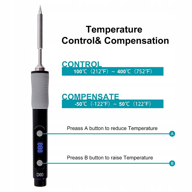- Регульована температура: постійна температура від 100 ℃ до 400 ℃ з компенсацією температури для точної пайки.