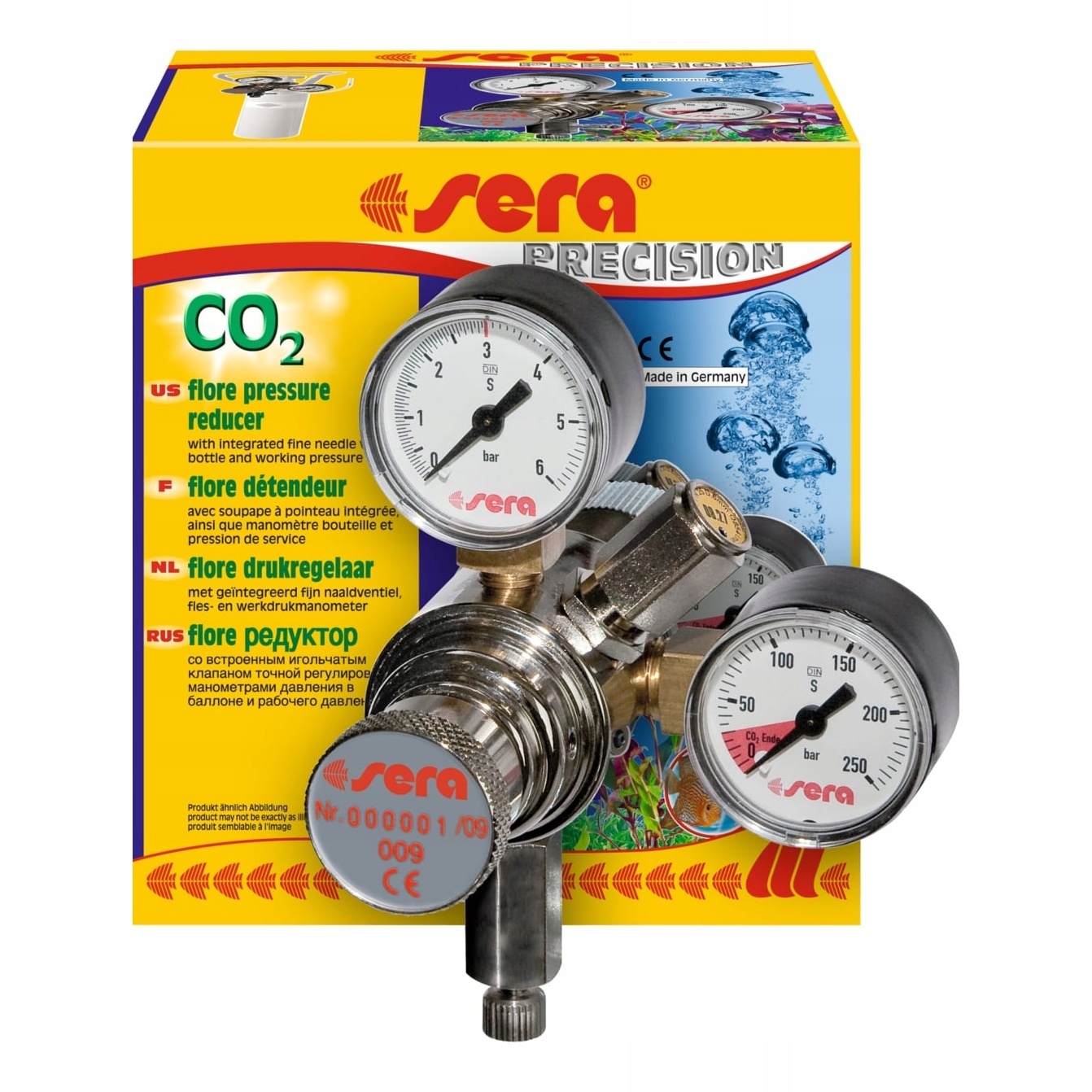 Редуктор тиску Sera для системи Flore — це надійний пристрій, який точно знижує тиск CO2 з балона (приблизно 50-60 бар) до рівня, прийнятного для акваріума (0,1-2,5 бар).