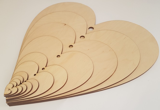 Точно виготовлені сердечка з екологічного матеріалу, такого як дерево (фанера).