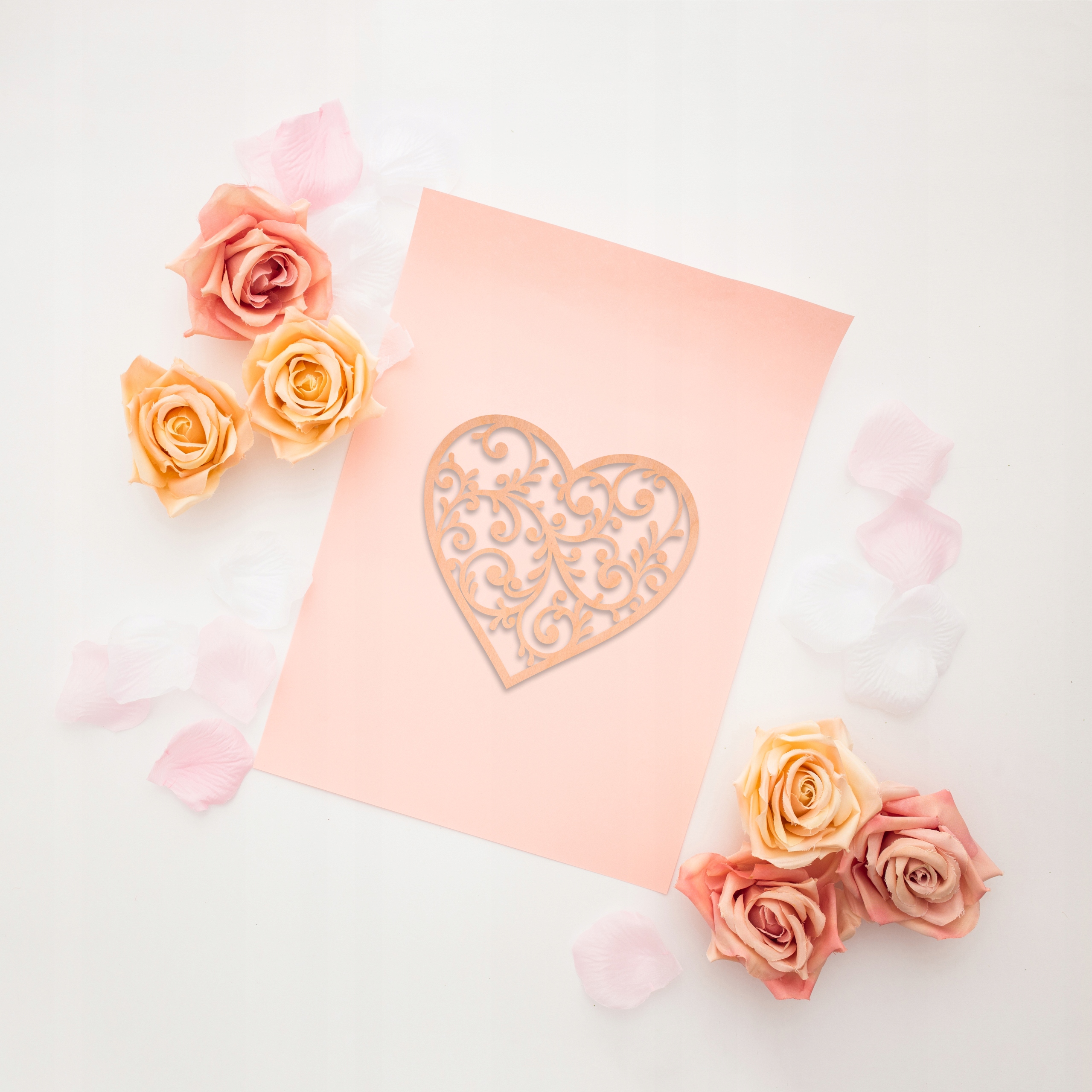 Серце дерев'яне, ажур 1 10см, декор ВЕСІЛЬНЕ ВЕСІЛЬНЕ