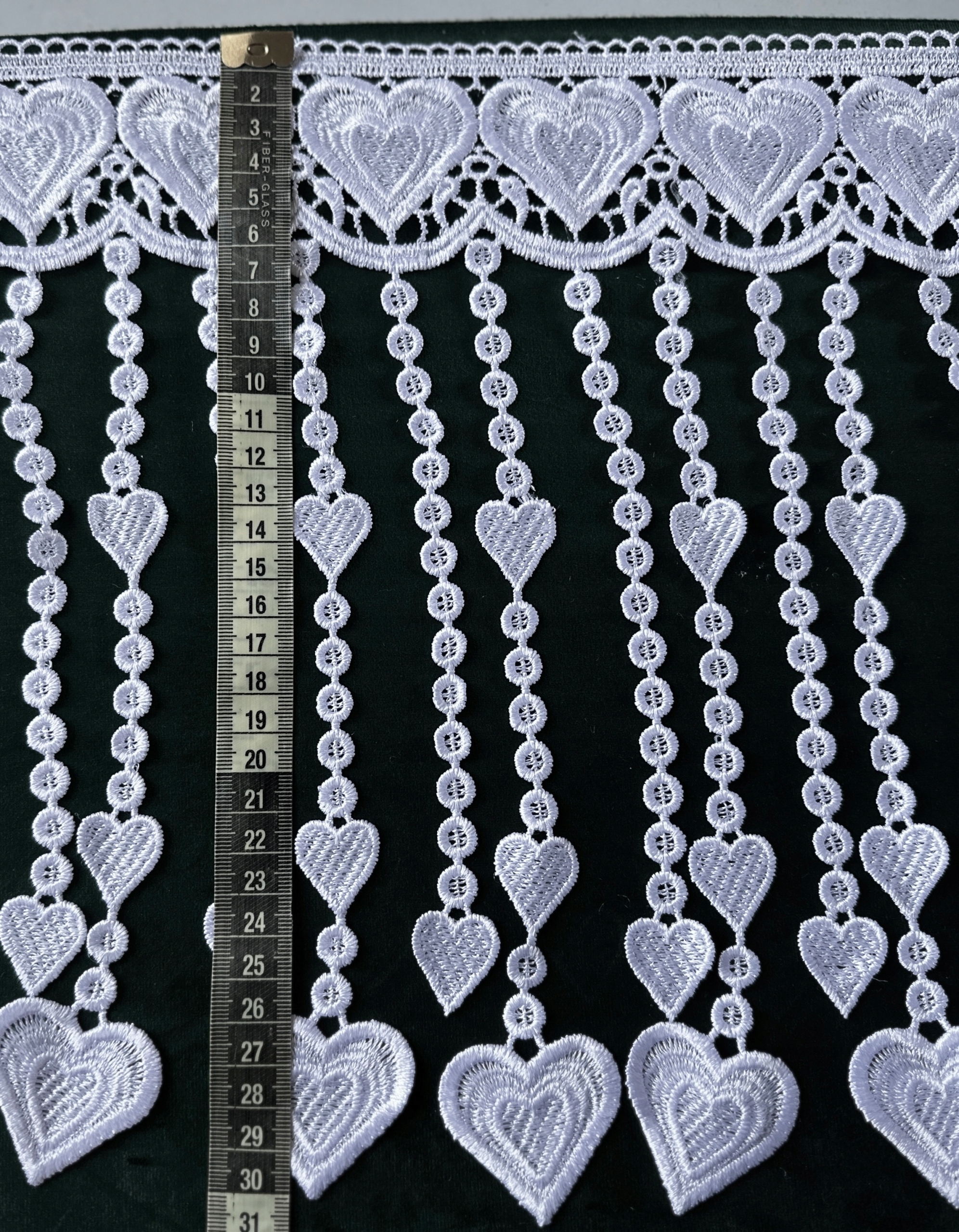 Серце Гіпію 30 см з мереживного орнаменту візерунку Холодна біла вишивка