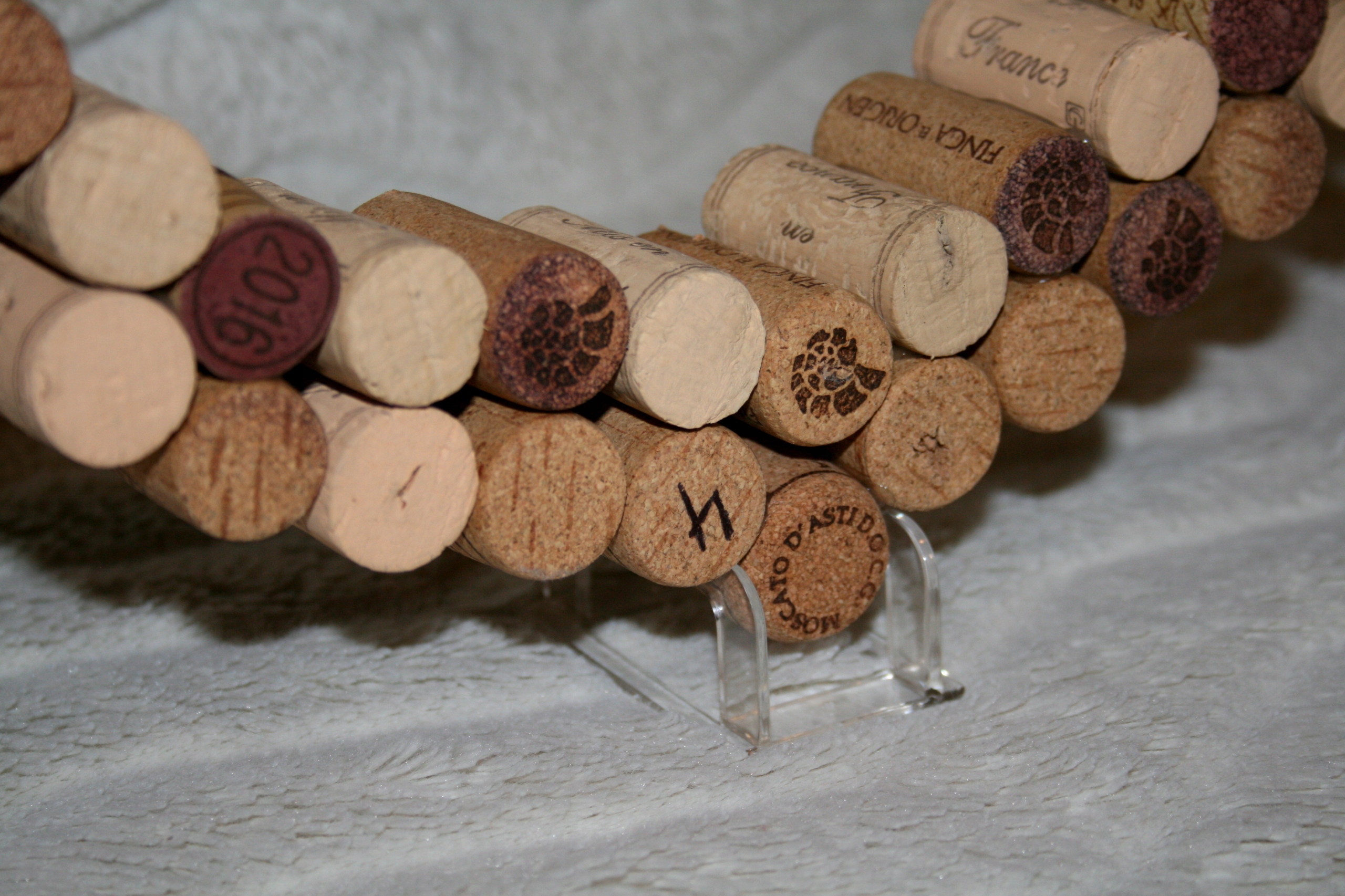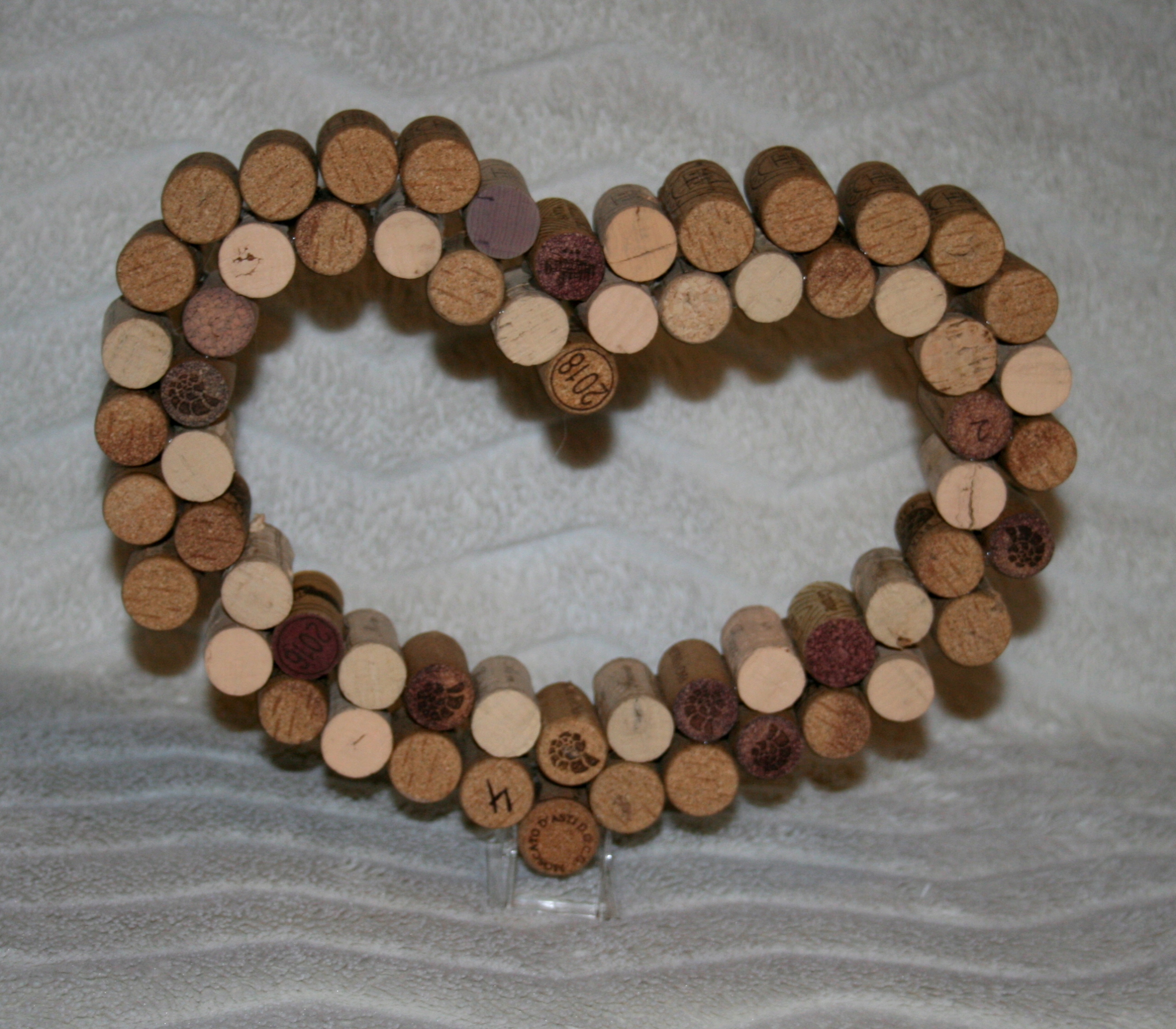 Серце ручної роботи з винних та шампанських пробок зі спеціальною підставкою, яка дозволяє розмістити прикрасу вертикально будь-де.