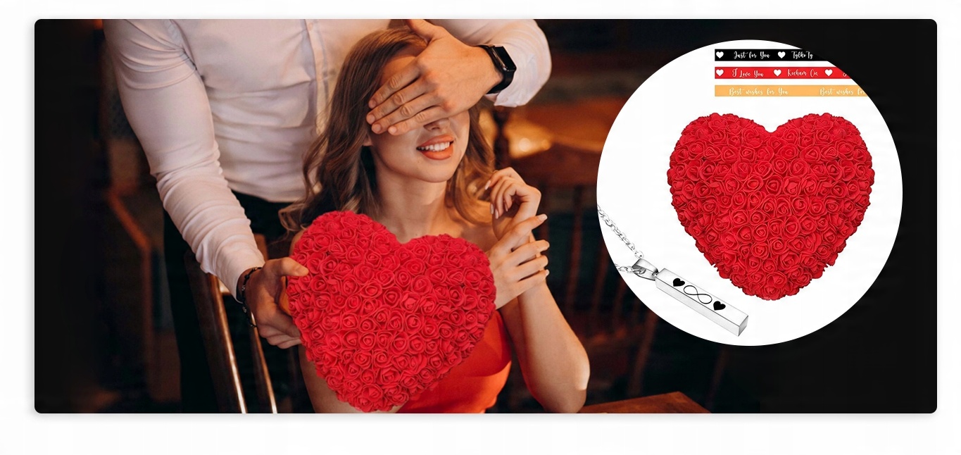 ВЕЛИКЕ СЕРЦЕ-ТРОЯНДА з пелюсток троянд + НАМИСТО до Дня святого Валентина 10 в 1 INFINITE LOVE з сердечками