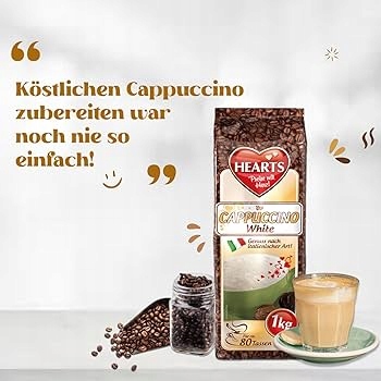 Cappuccino HEARTS White зі смаком MILK 1 кг - ідеальна композиція розчинного кавового напою типу капучіно.
