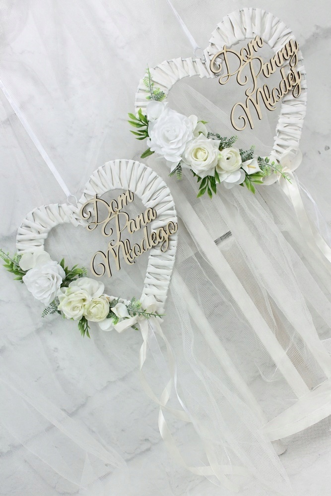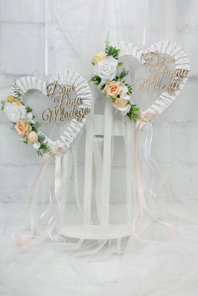 Додатково прикрашений дерев'яним написом: Будинок нареченого та дім нареченої.