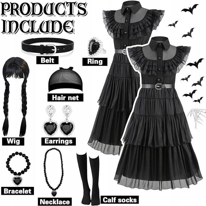 NCKIHRKK Костюм на Хелловін для дівчинки, 8-компонентний костюм на Хелловін для дівчаток з перукою та прикрасами, дитячий костюм на Хелловін для дня народження, Хелловін Карнавальний косплей, 110 см