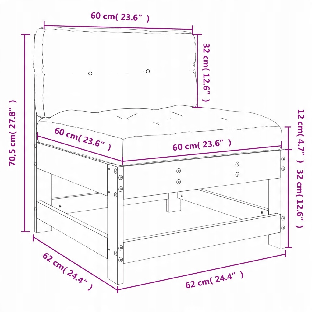 - Подушка сидіння розміри: 60 x 60 x 12 см (Д x Ш x Т)