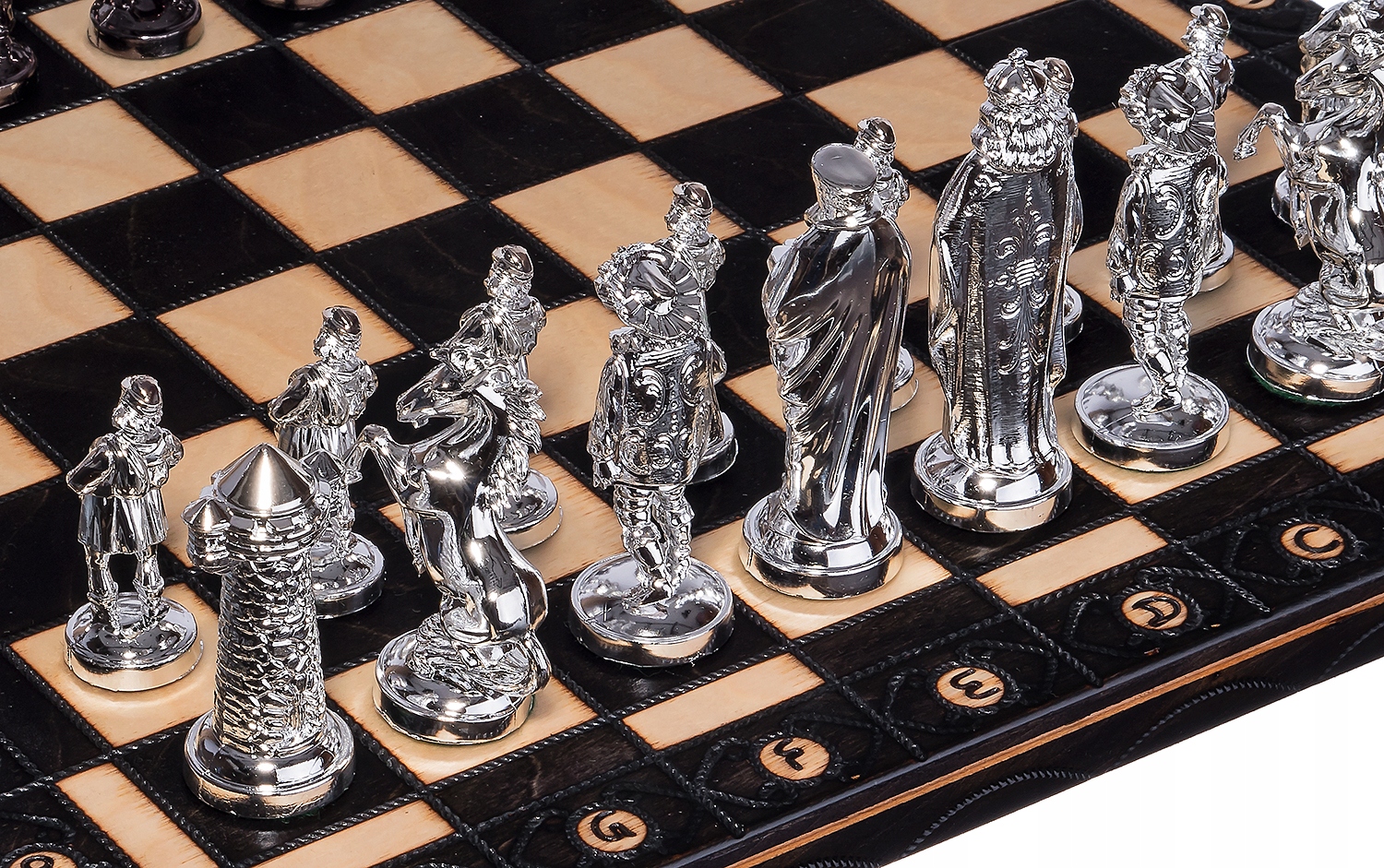 СЕРЕДНЕВІЧНІ ДЕРЕВ'ЯНІ ШАХИ СРІБНО-ЧОРНІ ВЕЛИКІ