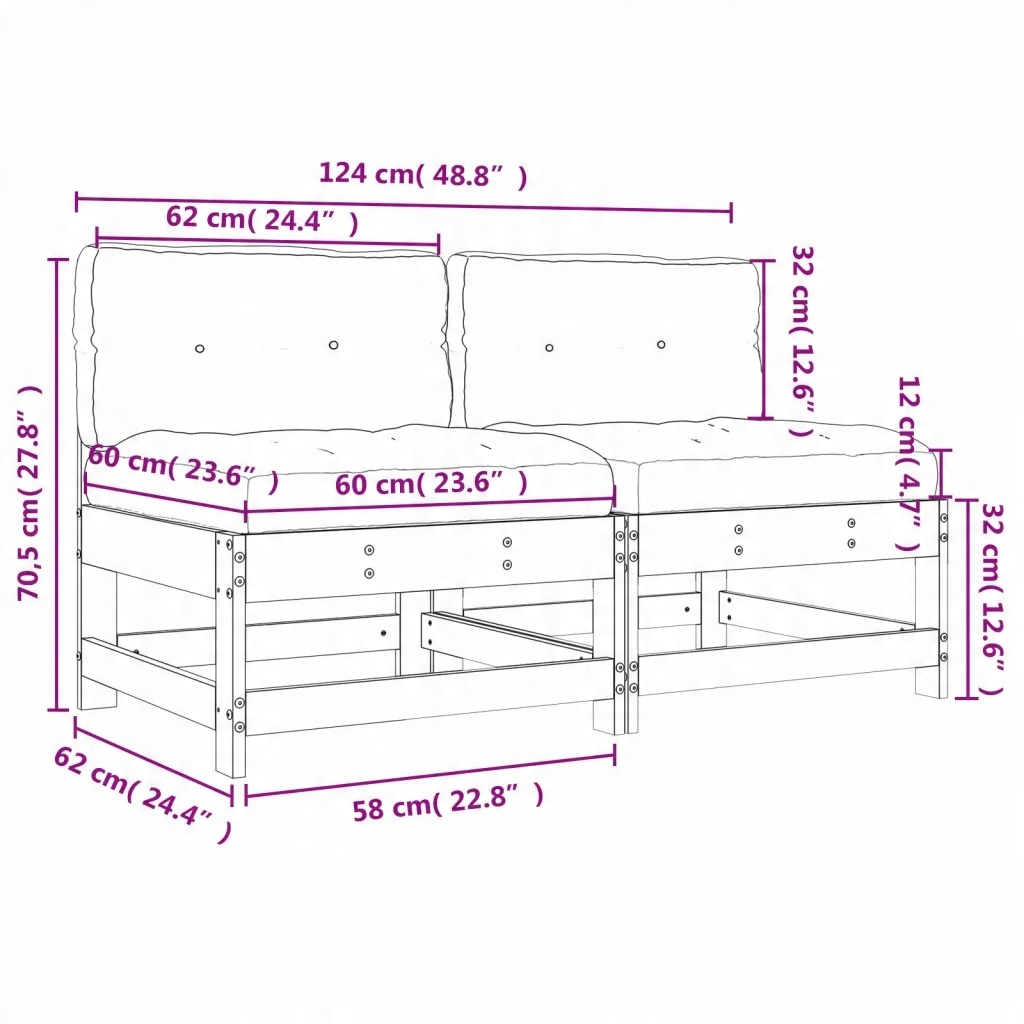 Середні сидіння з подушками, 2 шт., мед, масив сосни