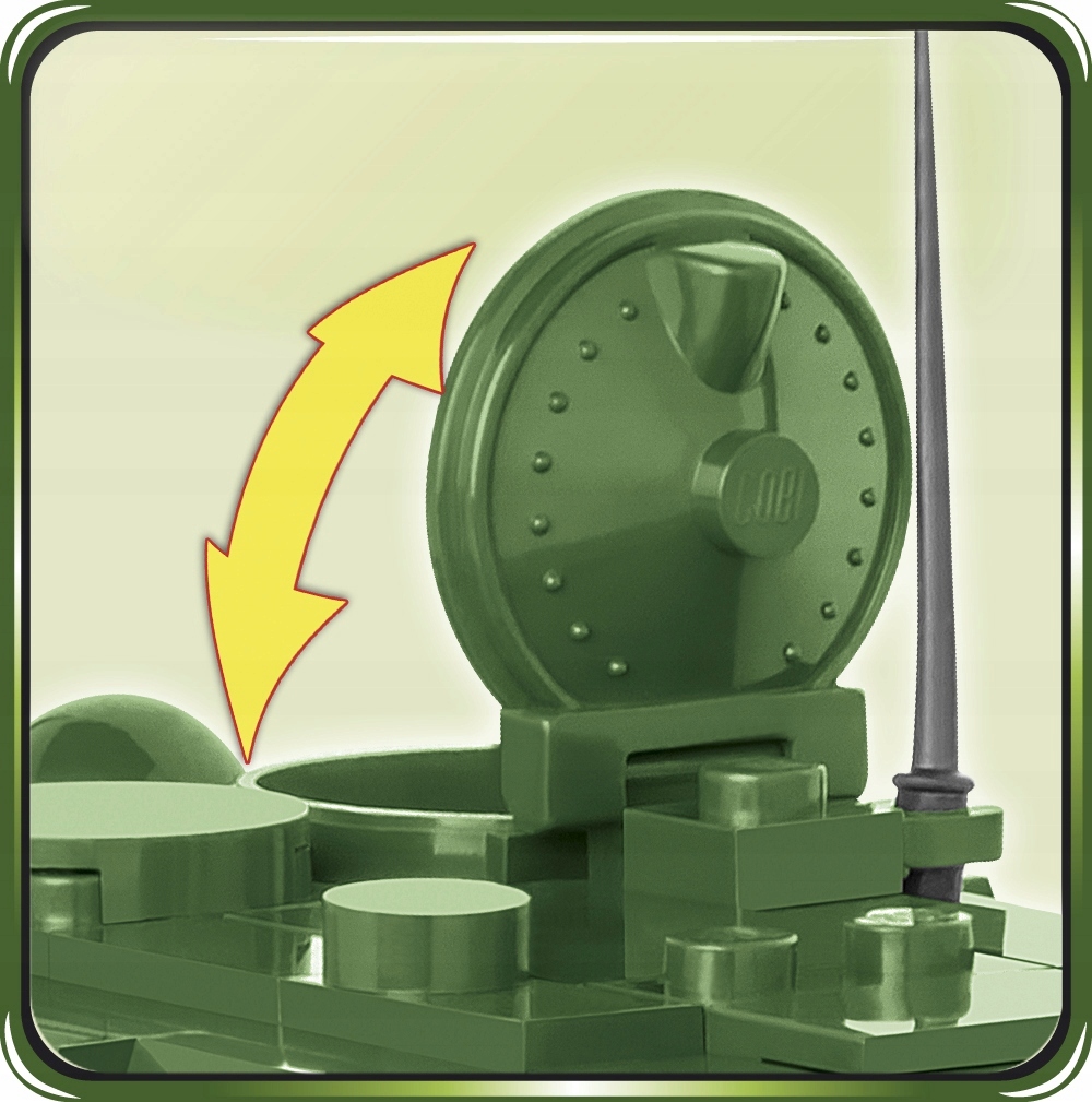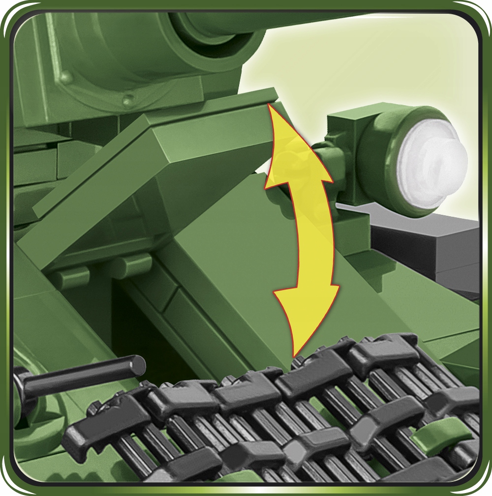 Класика від COBI! Остання версія моделі танка Т-34 зазнала революційних змін. Використання аж 668 блоків дозволило надзвичайно точно відтворити форму автомобіля. Були використані менші гусениці, корпус звужений, а передня стінка броні згладжена. Доопрацьовано вежу, конструкцію гармати та крила. Під сервісною кришкою знаходиться привабливий на вигляд макет двигуна. Модель має ефективну гусеничну тягу, поворотну вежу, рухливу гармату і відкривається люк. У комплекті блоки з радянським і польським маркуванням на вибір. Доповнює все це фігура водія танка, оснащеного особистим пістолетом і навушниками нового типу. Чіткі інструкції містять список блоків і статистику, які можна використовувати в безкоштовній грі COBI Historical Battle Game.