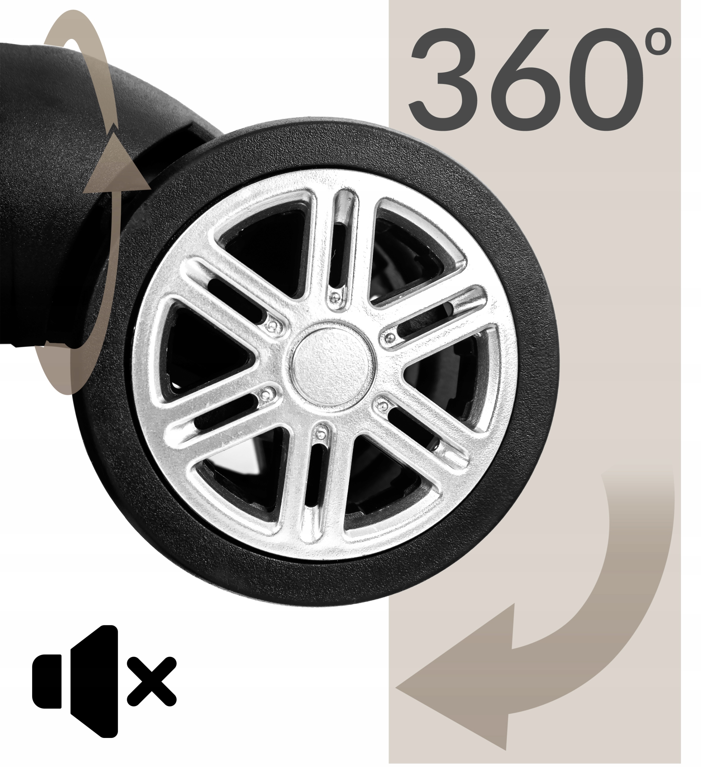 - Набагато легше маневрувати валізою завдяки чотирьом міцним колесам, які миттєво реагують на зміни напрямку.