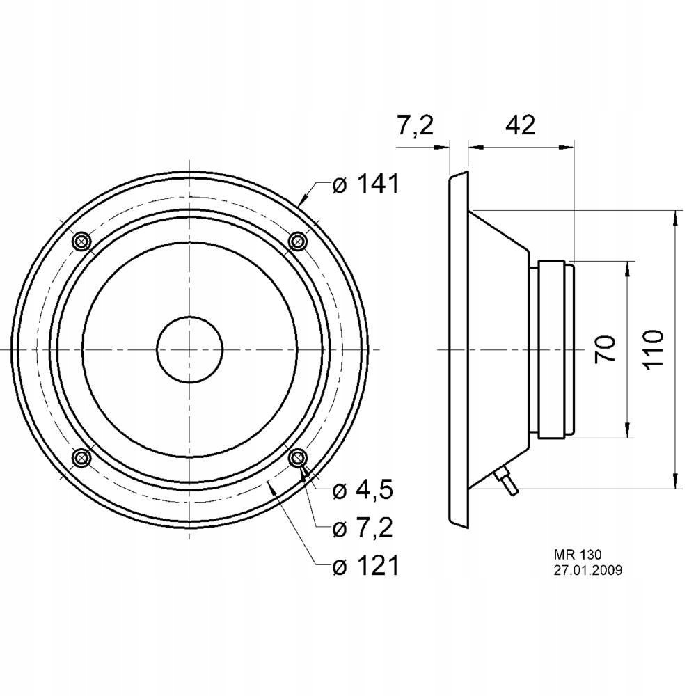 Середній нім’я, Visaton MR 130, на 110 мм, 80/100 Вт, 8 Ом, 400-13 000 Гц