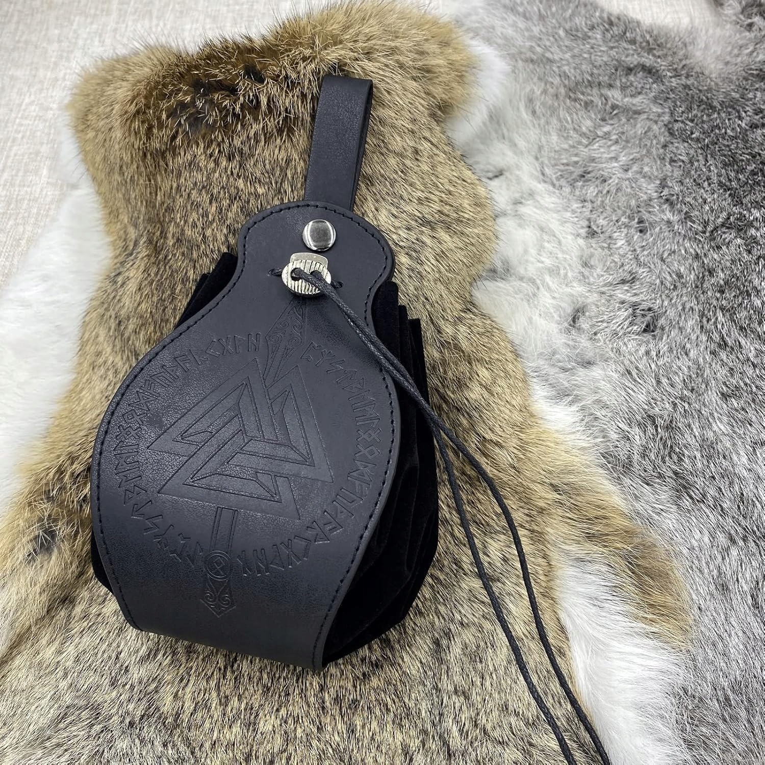 Середньовічна сумка з рельєфним малюнком - ідеальне доповнення до любителів фантазії та історії! 4 Цей стильний гаманець виготовлений з високоякісної штучної шкіри, яка виглядає як реальна, але жодна тварина не постраждала у своєму виробництві. Товщина матеріалу становить 3 мм, що надає йому довговічності та твердого вигляду. Завдяки точному тисненню в передній частині, сумка вражає унікальним дизайном, що стосується епохи вікінгів та середньовічних традицій.