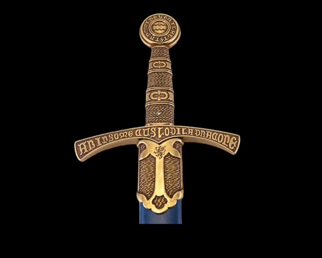 Латинський напис на хрестовині та наверші: Тримається драконом, який не спить, і в ім'я правди