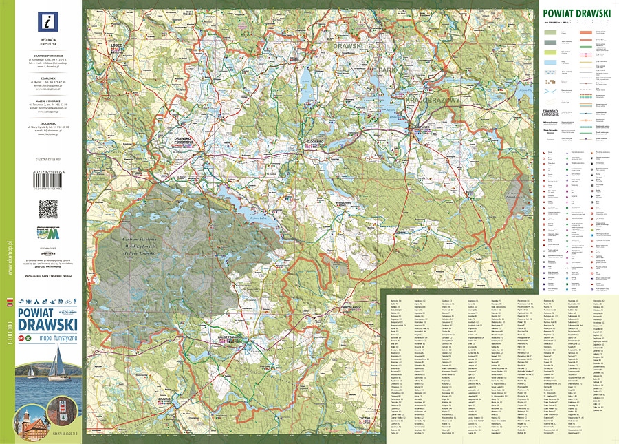 Картографічна частина: туристична карта Дравського району з прилеглими районами, покажчик міст, легенда польською та англійською мовами .