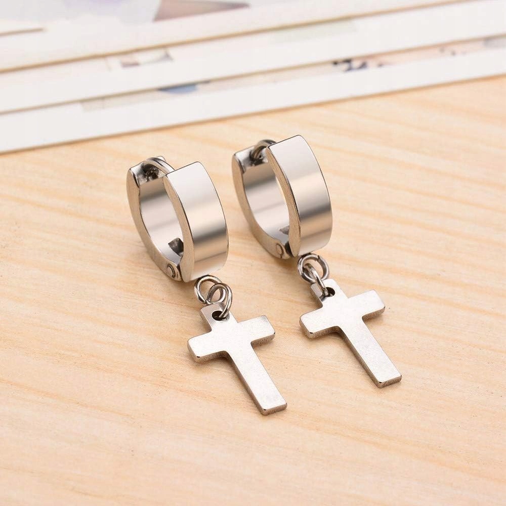 СЕРЕГИ-КІЛЬЦЯ З ХРЕСТИКОМ 5 ПАР РІЗНИХ КОЛЬОРІВ СТАЛЕВІ