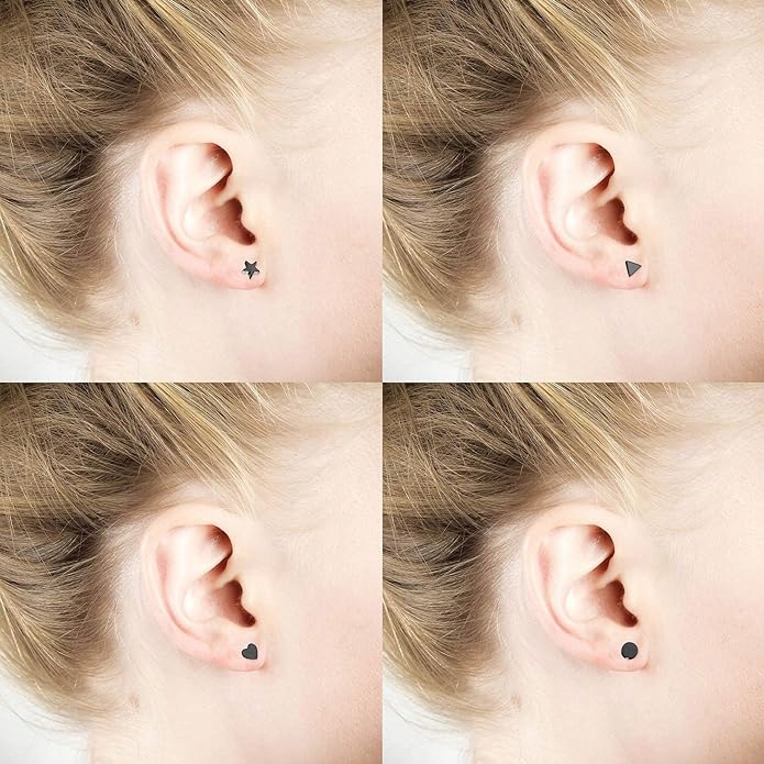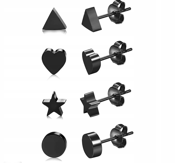 СЕРЕГИ З ХІРУРГІЧНОЇ СТАЛІ, ЧОРНИЙ НАБІР 4 ШТ. SP04