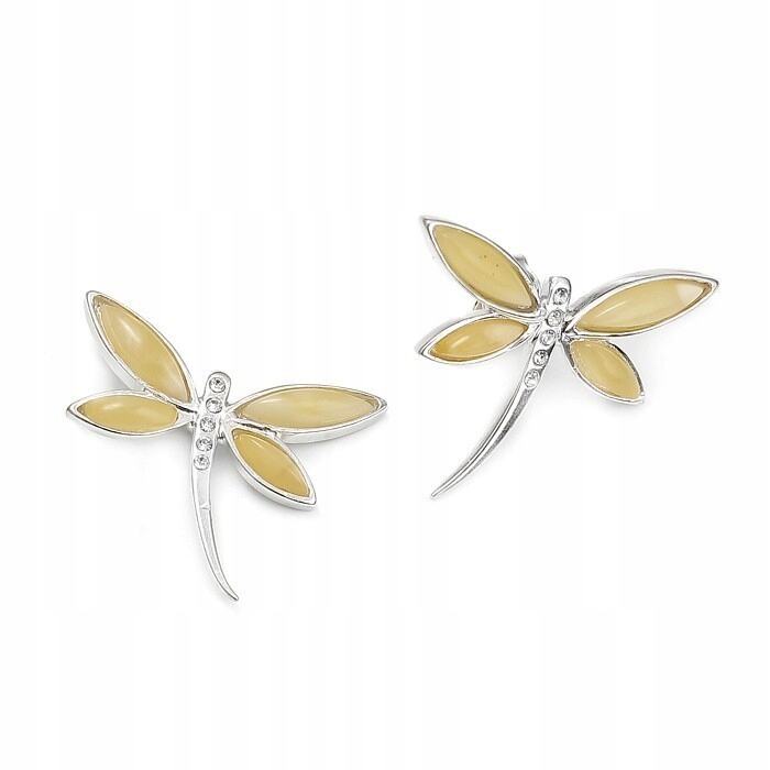 СРІБНІ СЕРЕЖКИ СТРАКОЗА З БУРШТИНОМ