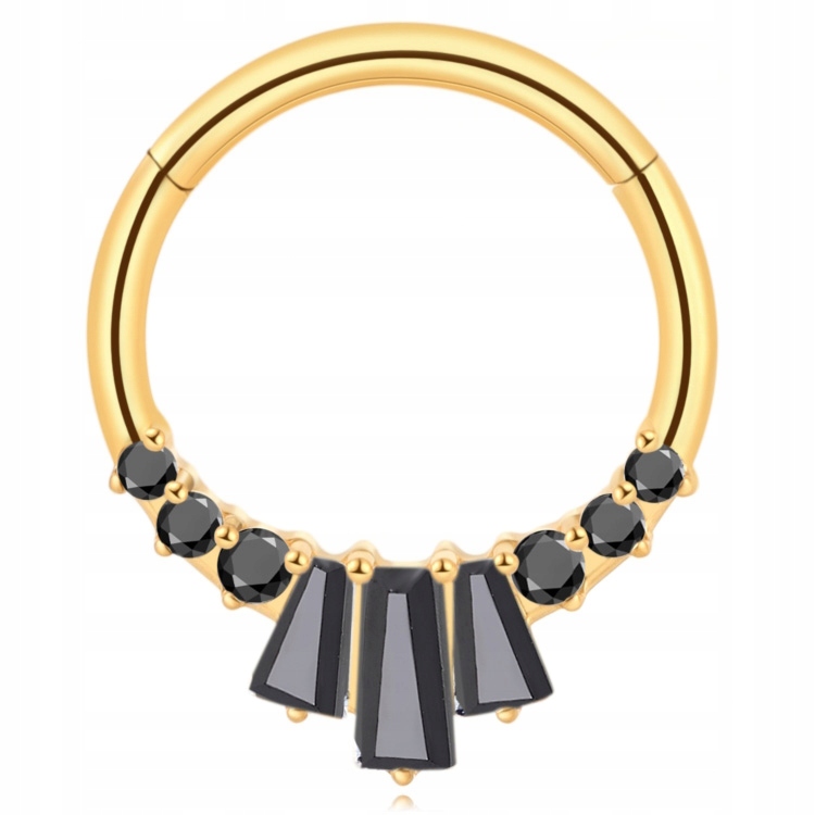 СЕРЕЖКА КОЛІЩАТКА CLICKER ЗОЛОТИЙ SEPTUM DAITH ЧОРНІ ТИТАНОВІ СТРАЗИ 1,2/10