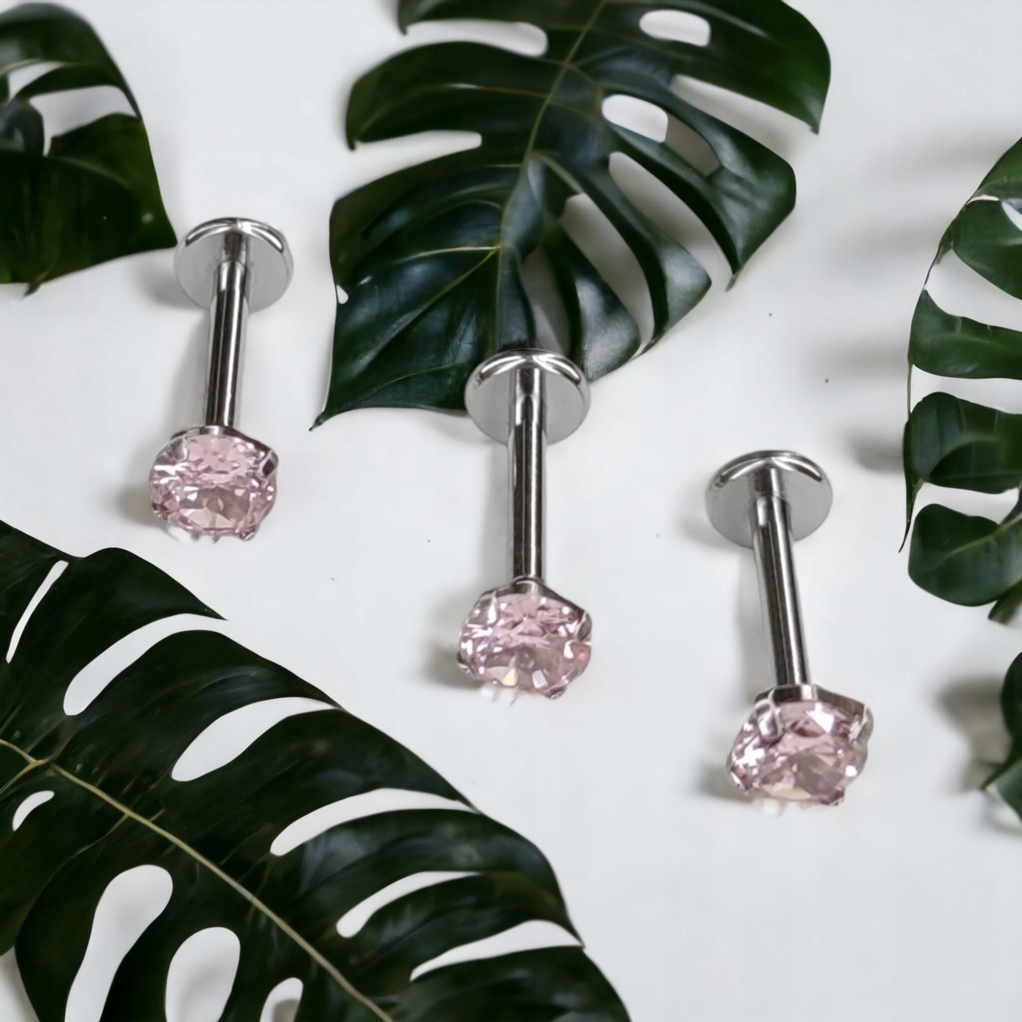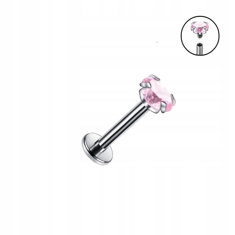 Срібна сережка-лабрет із вбудованим рожевим цирконом — вишуканий аксесуар, який додасть дівочого шарму будь-якому стилю. Виготовлений з хірургічного титану, він міцний і безпечний для шкіри. Рожевий циркон додає ніжне сяйво і змушує сережку привертати увагу. Ідеально підходить для людей, які цінують елегантний і дівчачий стиль.