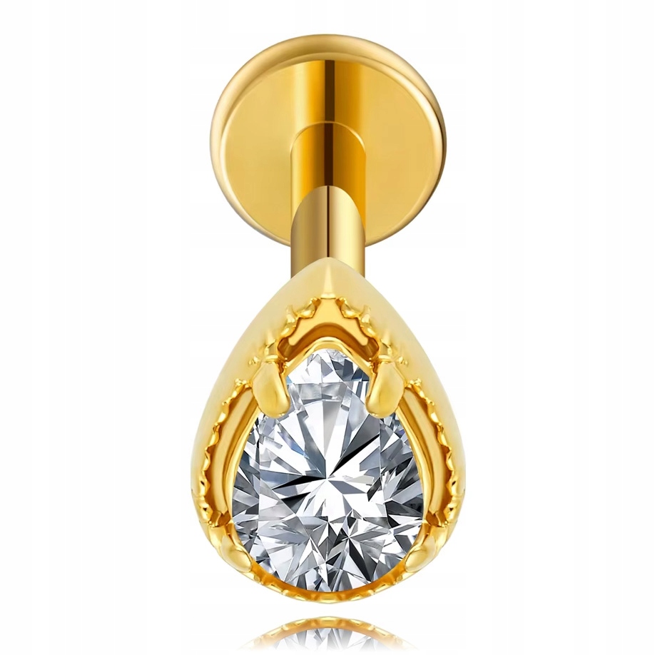 СЕРЕЖКА ЛАБРЕТ ЗОЛОТИЙ ТИТАНОВИЙ З МОТИВОМ СЛЬОЗИ І СТРАЗИКОМ FLAT 1,2/6