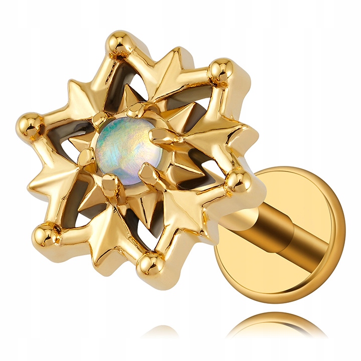 СЕРЕЖКА ЛАБРЕТ ЗОЛОТИСТА ТИТАНОВА З МОТИВОМ ЗІРКИ ТА ОПАЛОМ 1,2/6