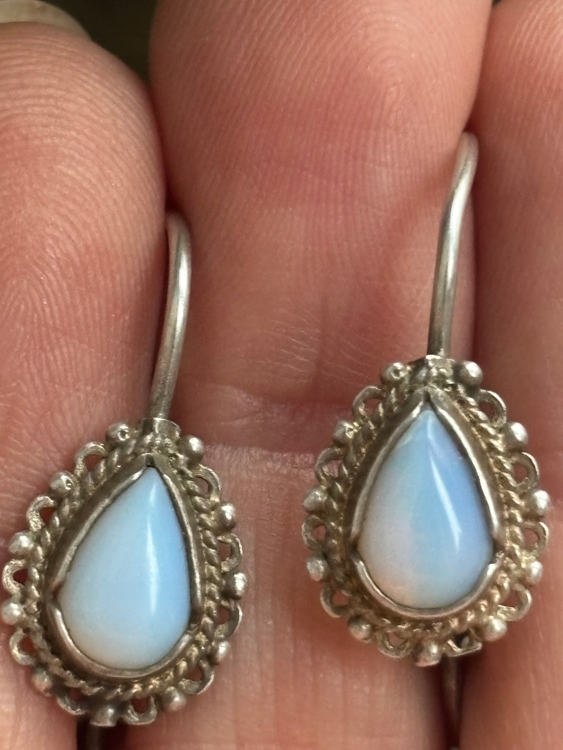 Сережки ART, старе срібло, підвісні, білий, блакитний камінь, ПРЛ