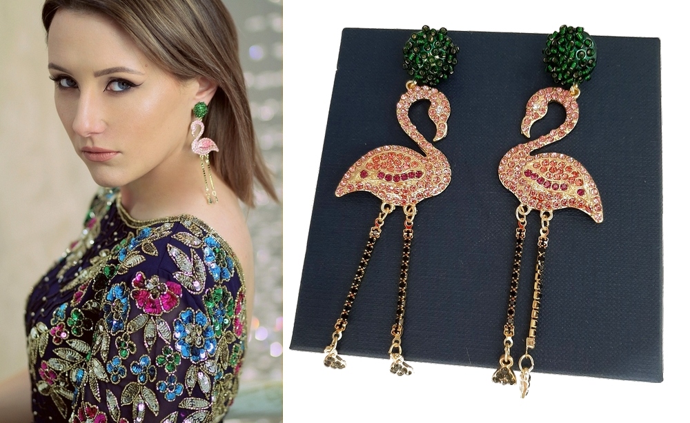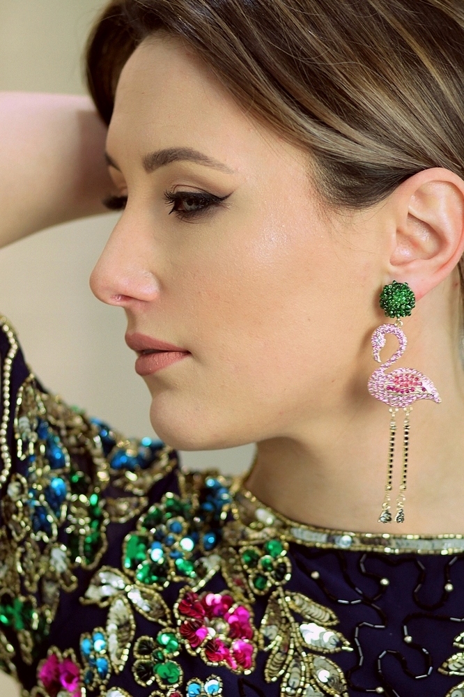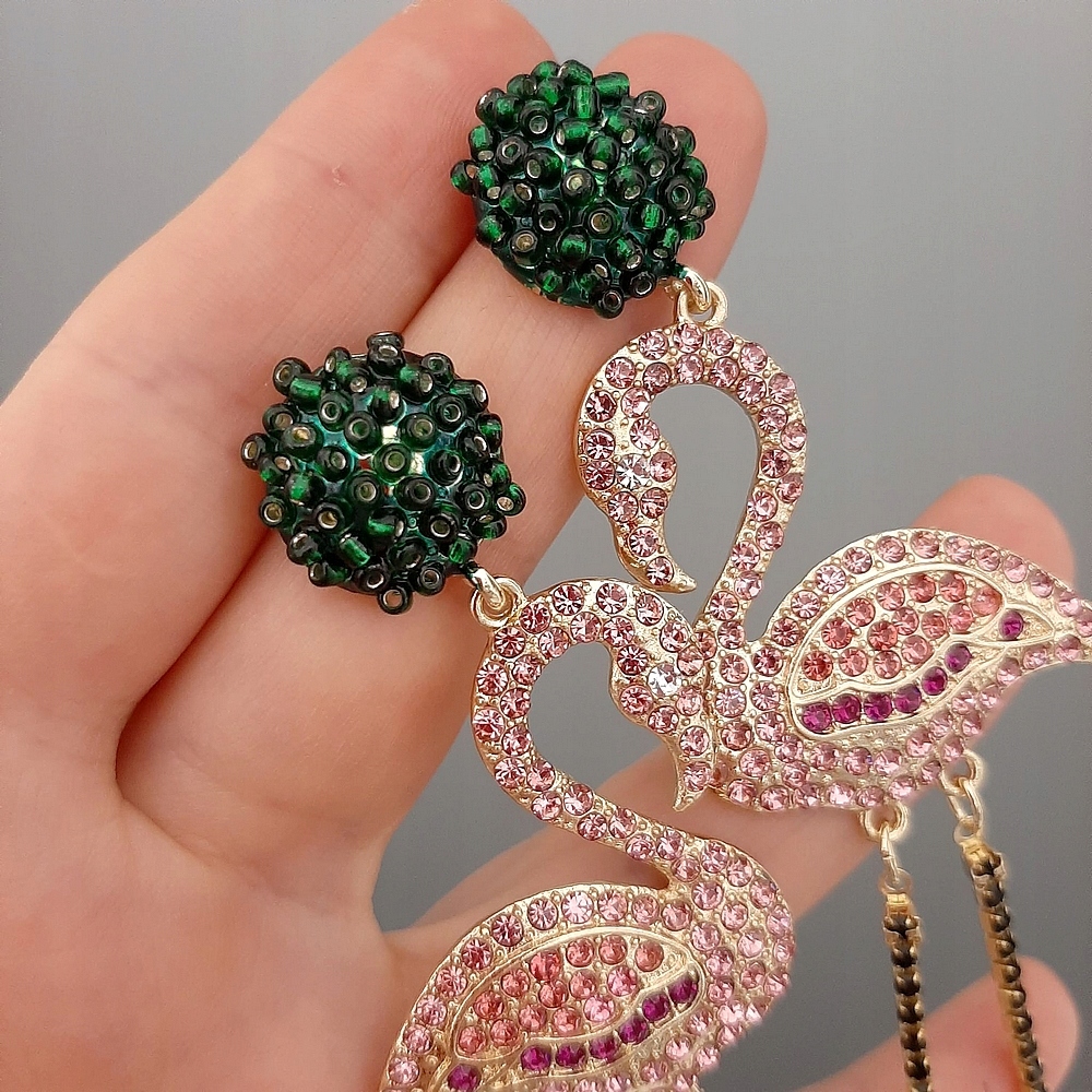 СЕРЕЖКИ ФЛАМІНГО РОЖЕВО-ЗЕЛЕНІ ФЛАМІНГО