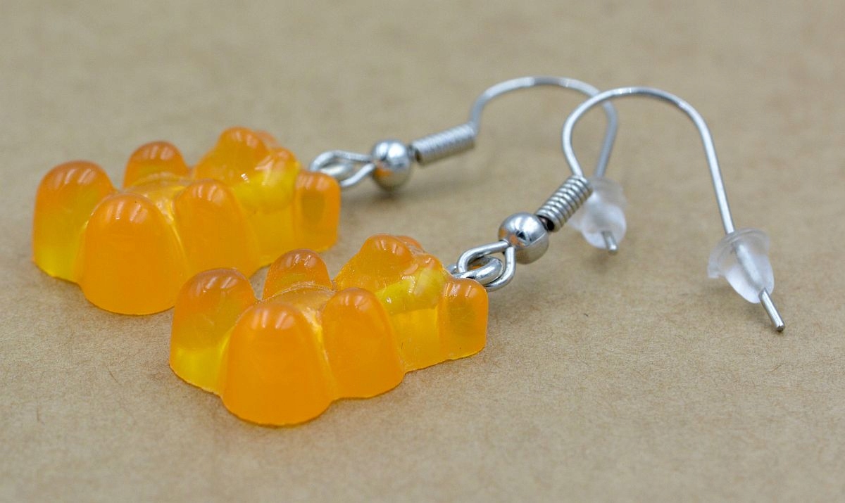 Сережки ВЕДМЕДІ, як желе Haribo - ОРАНЖЕВІ прозорі
