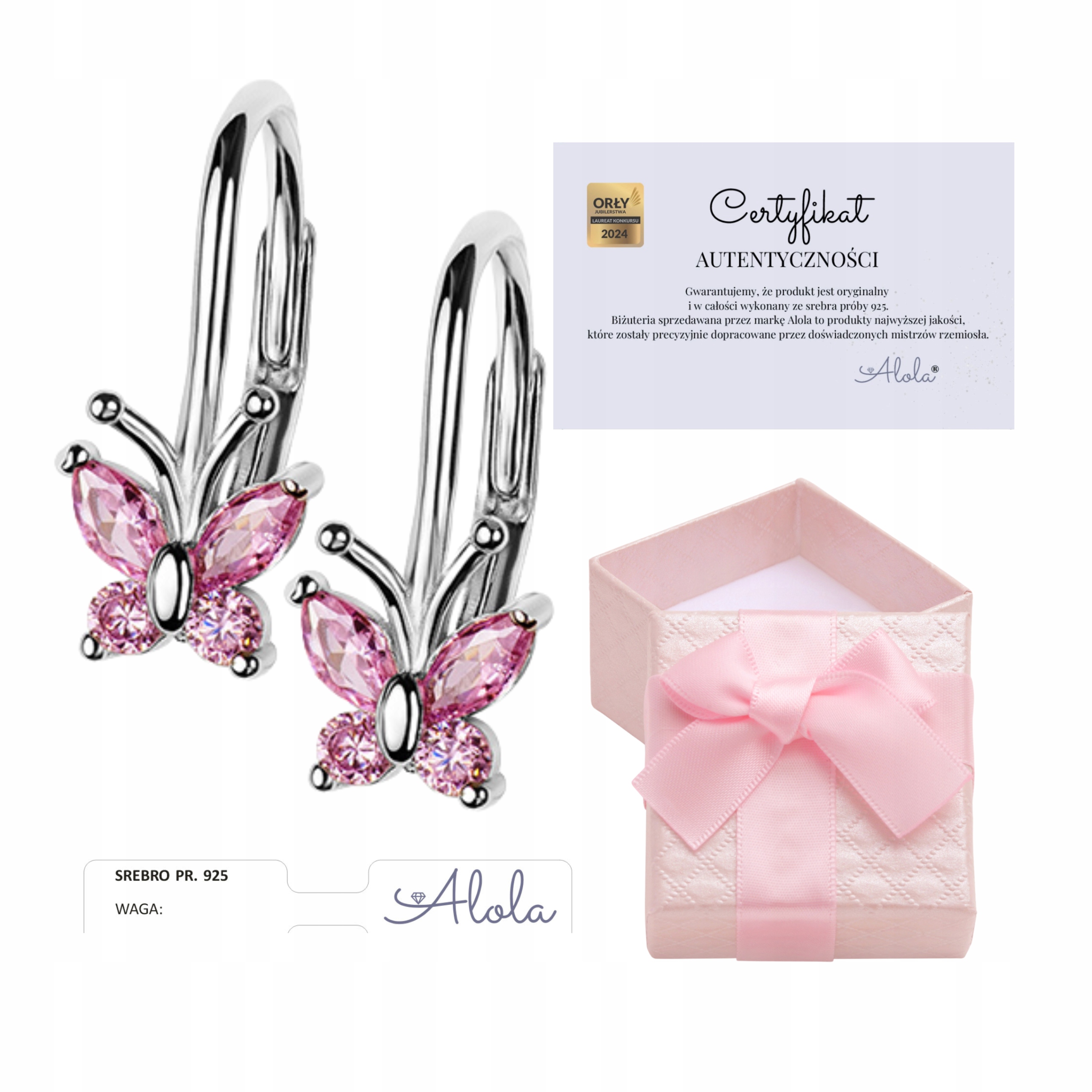 Красиві сережки-метелики для дівчат, виготовлені з найякіснішогосрібла з родіюванням. 925. Сережки з діамантовими рожевими цирконами, які надають їм гарного блиску.