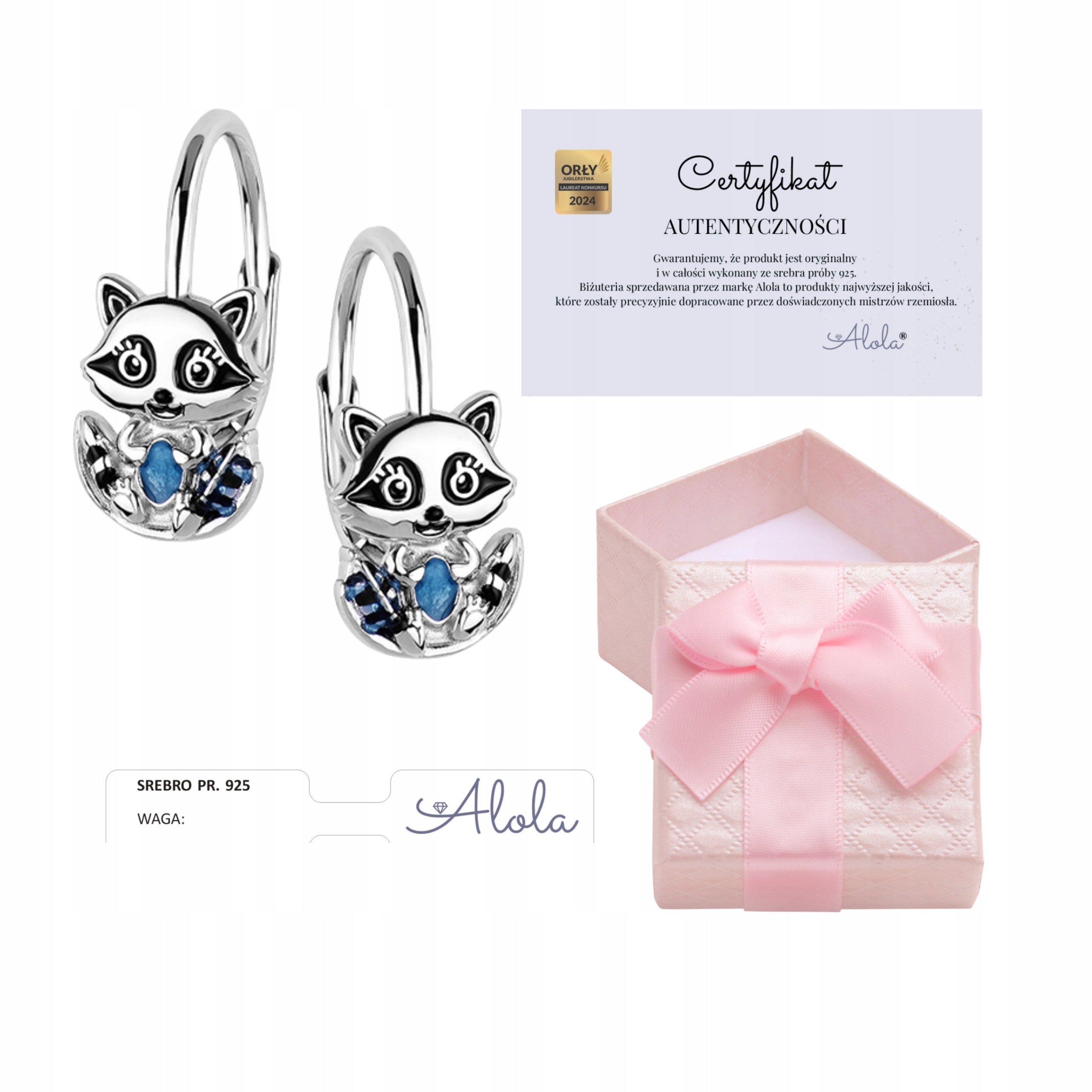 Документ, виданий брендом Alola, є гарантією придбання справжнього продукту, виготовленого з 925 срібла, який підтверджується зразком срібла та іменком листа A.