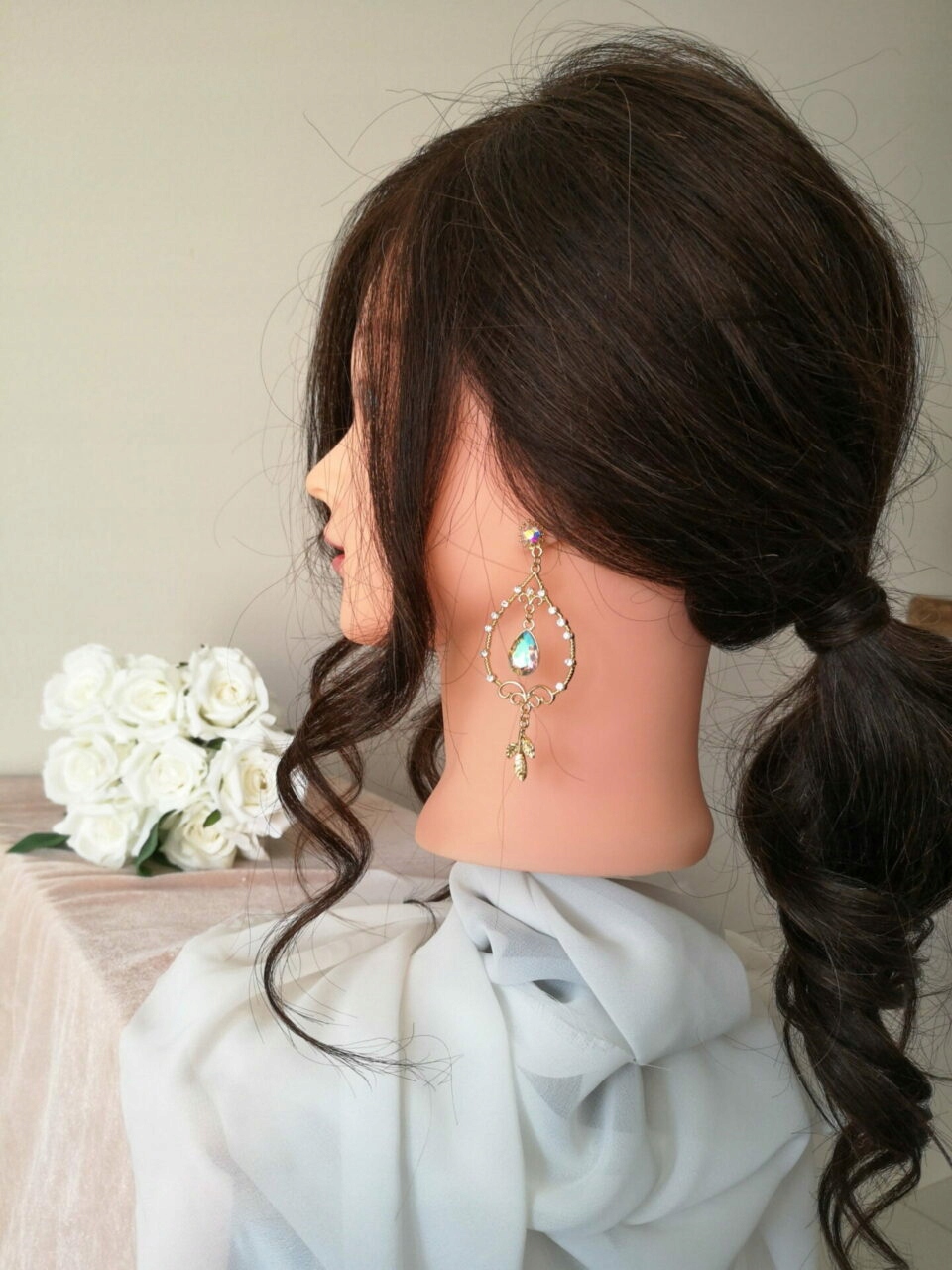 Золоті сережки, з мотивом листя та мерехтливими кольорами цирконів, є ідеальним поєднанням для стилізації в кліматі Boho Glam.