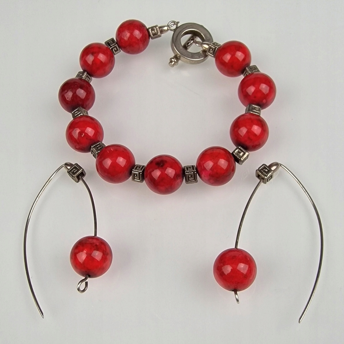 СЕРЕЖКИ ТА БРАСЛЕТ З ЧЕРВОНОГО БИСИНУ