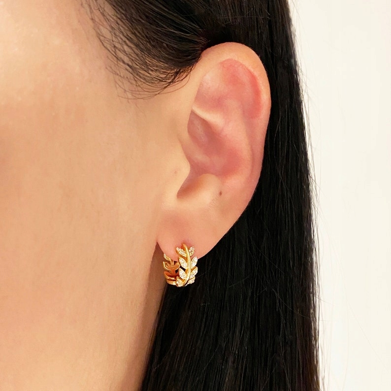 СЕРЕЖКИ З ОЛИВКОВИМИ ЛИСТЯМИ ЗОЛОТИЙ ЦИРКОНІЙ