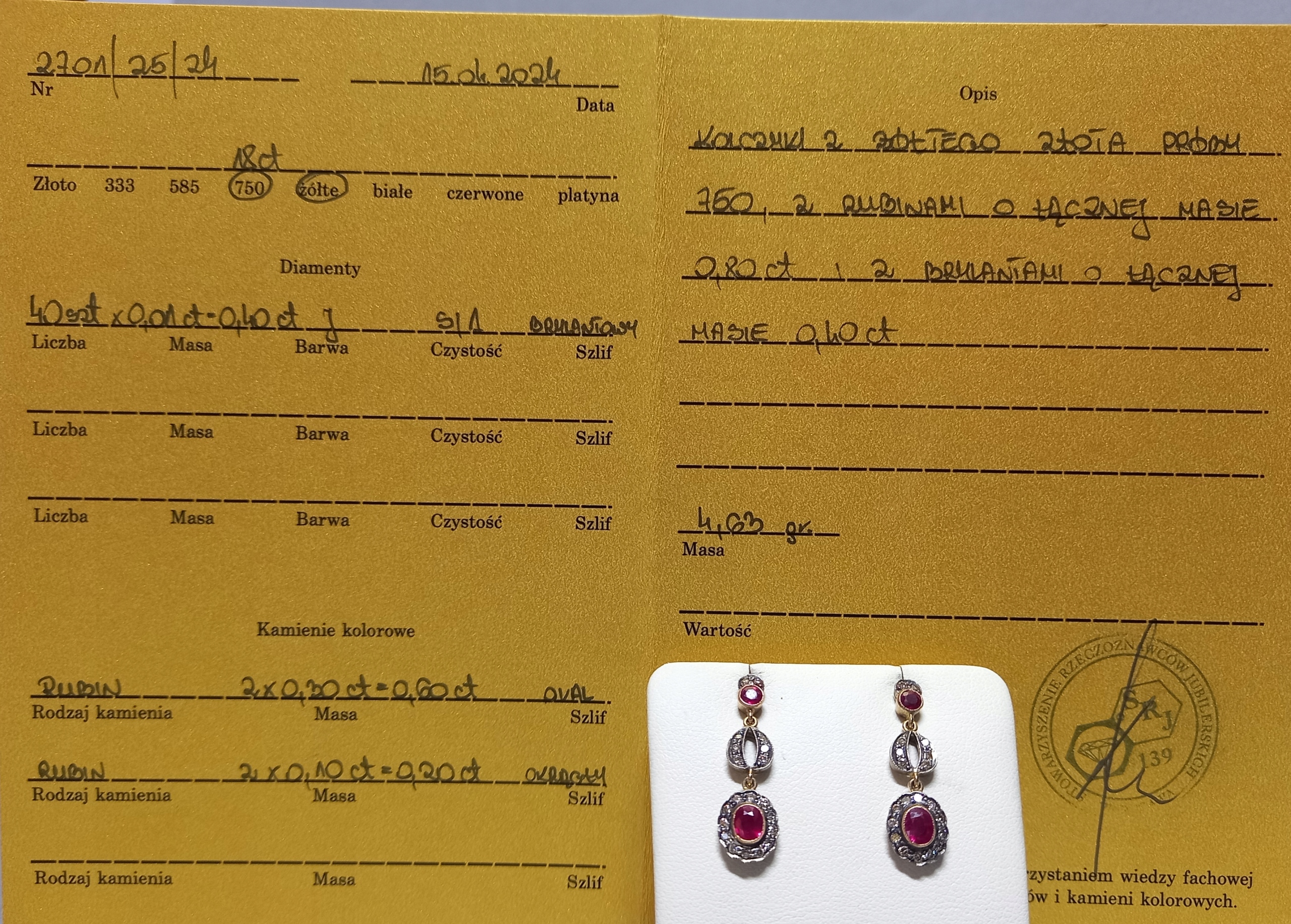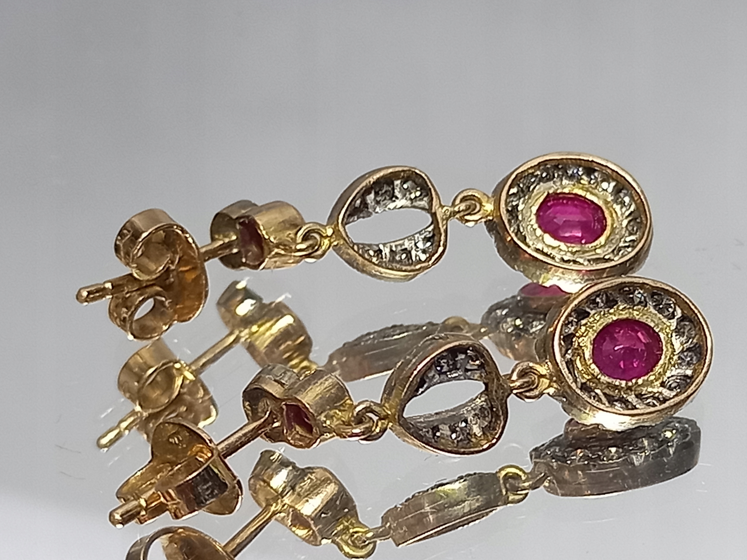 Сережки з рубінами та алмазами, 4,63 г золота 18 к