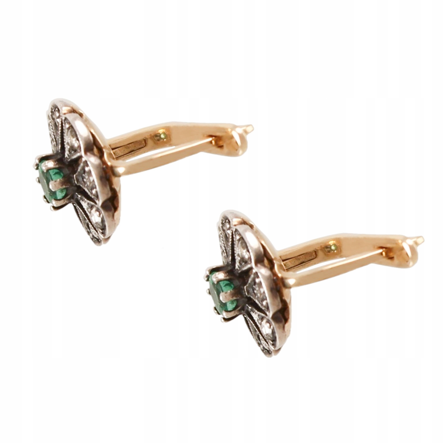 Сережки з золотистими срібними з діамантами та смарагдами