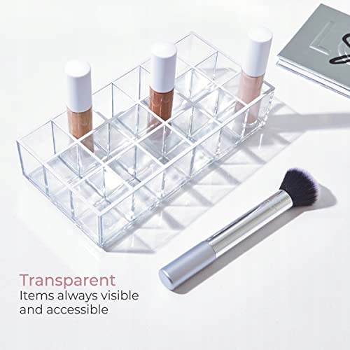• Ефективне зберігання: підвищені сторони зберігають помаду, макіяж та блиск у вертикальному та на місці -місцях, а відкрита гора та прозорі сторони гарантують, що предмети завжди будуть видимими та доступними.