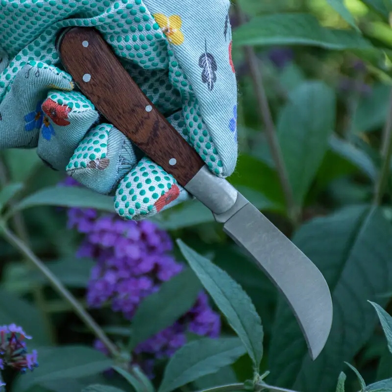 Багатоцільовий серпоподібний ніж повинен бути у кожного садівника. Завдяки компактній формі ніж поміщається в кишеню, тому він завжди буде під рукою. Профільована дерев’яна рукоятка забезпечує міцне захоплення, а високоякісне сталеве лезо ідеально направлятиме кожен розріз.