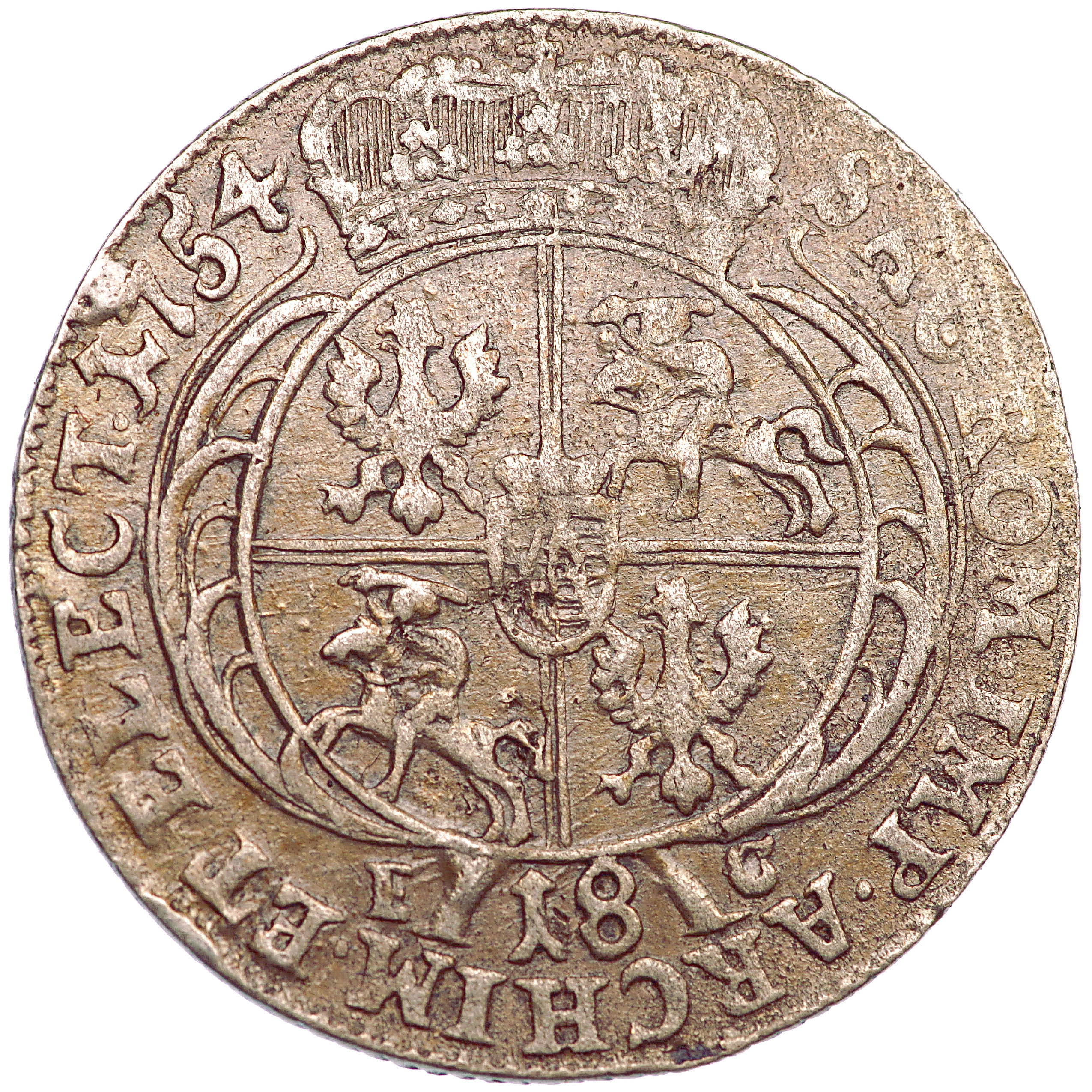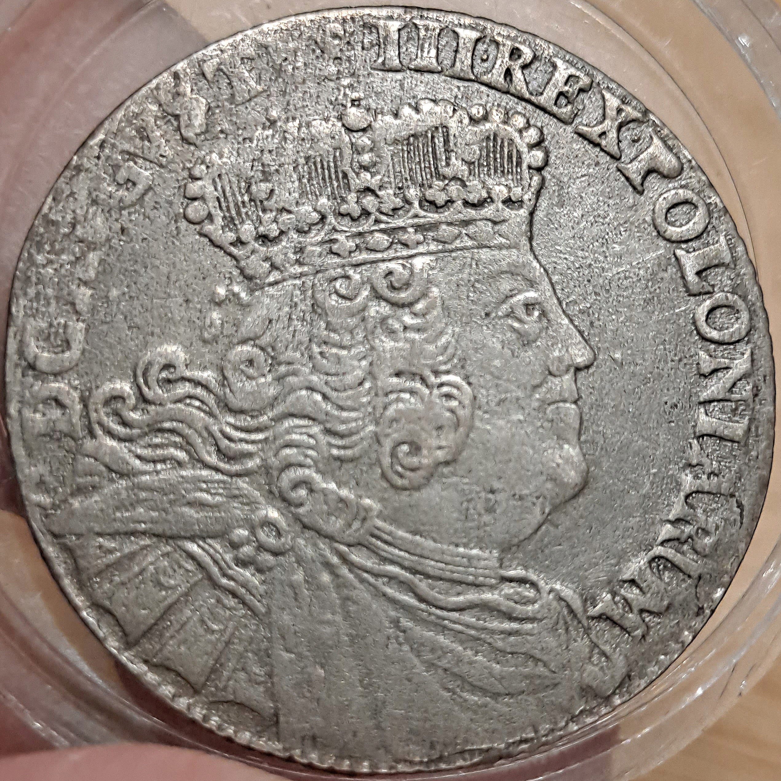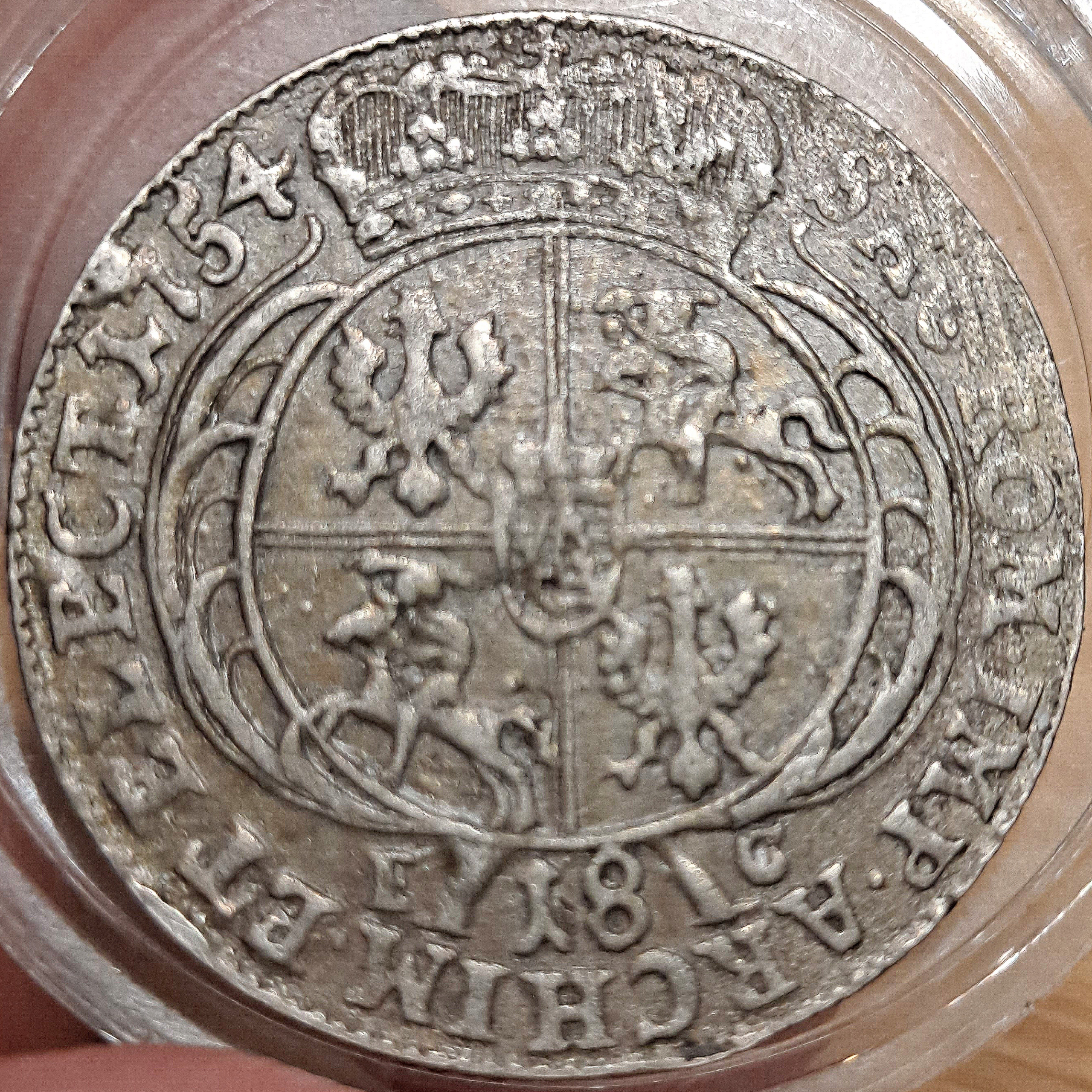 Август III Веттін, орт 1754, Лейпциг, ефраімек, срібло, 5,88 г, 27,4-27,7 мм.